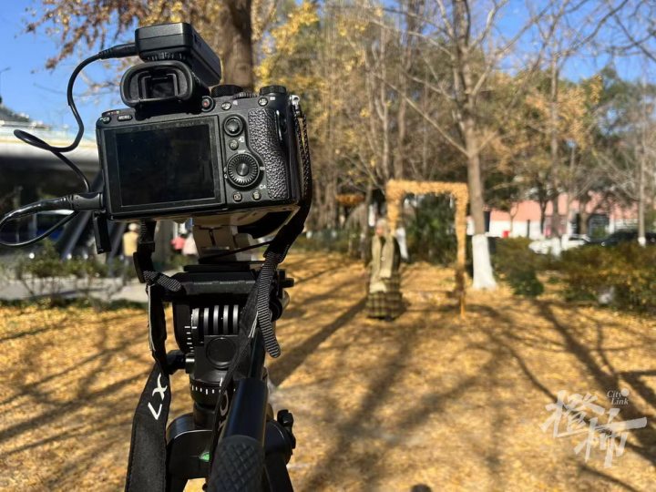 “落叶掉了一半才搭起来……我去拍照了。”大姐急急忙忙告别记者,也加入打卡的人流中。