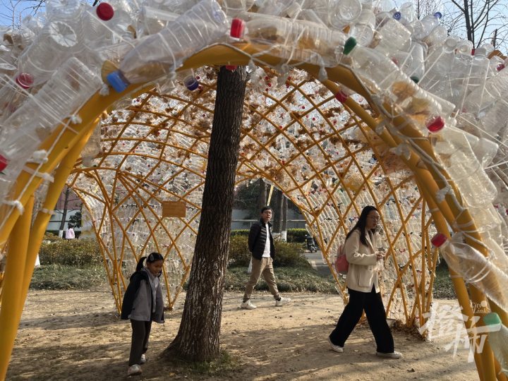 “比如那个鸟巢装置,全是瓶子搭建起来的,特别有想法。”