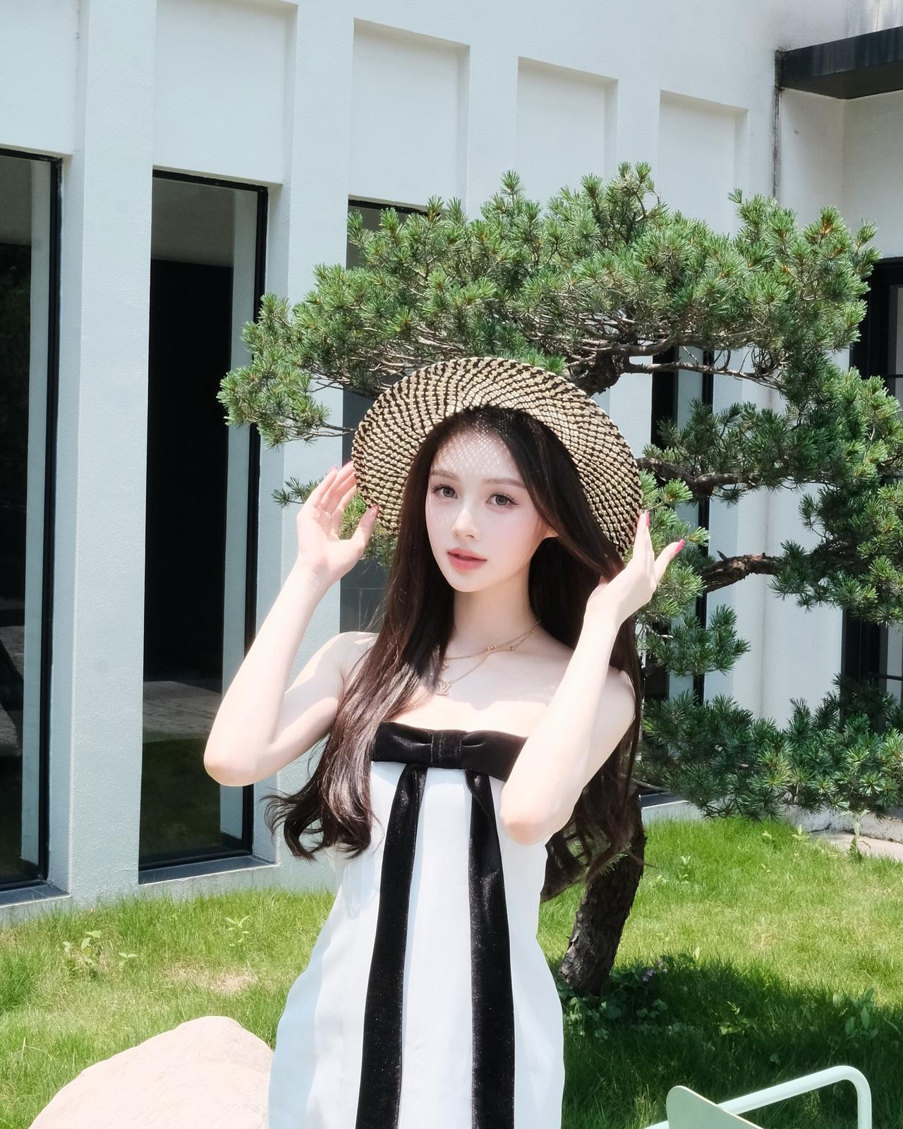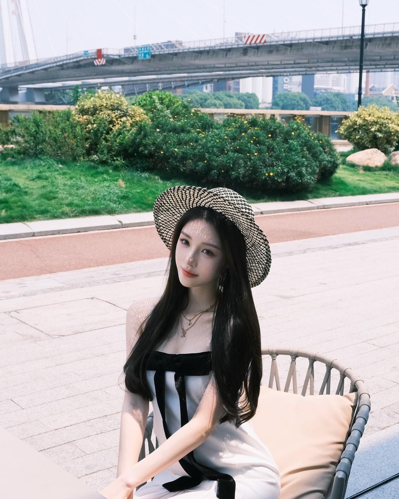 夏日清新穿搭,黑白条纹连衣裙搭配草帽,轻松自在。什么样的穿搭可以成为气质女神?