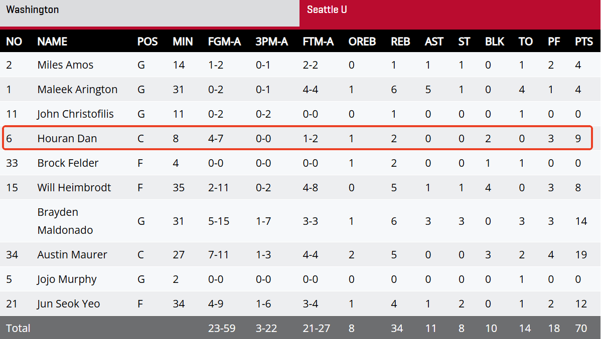 NCAA常规赛:淡厚然替补贡献9分2板,西雅图4分险胜华盛顿