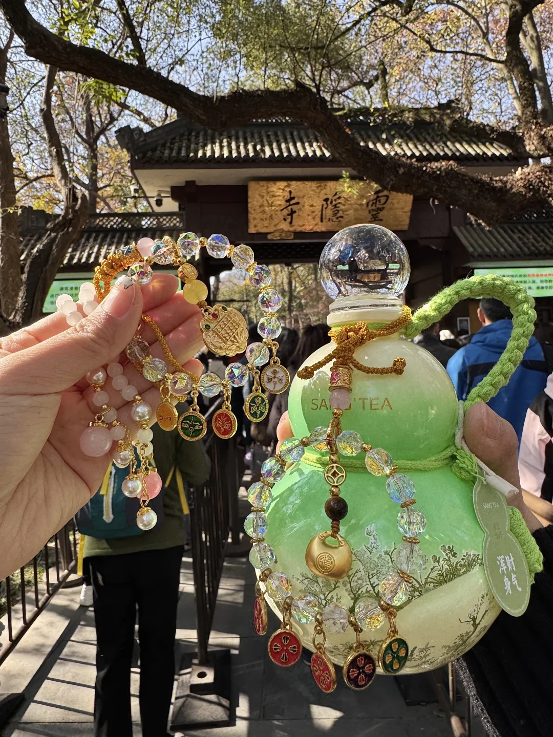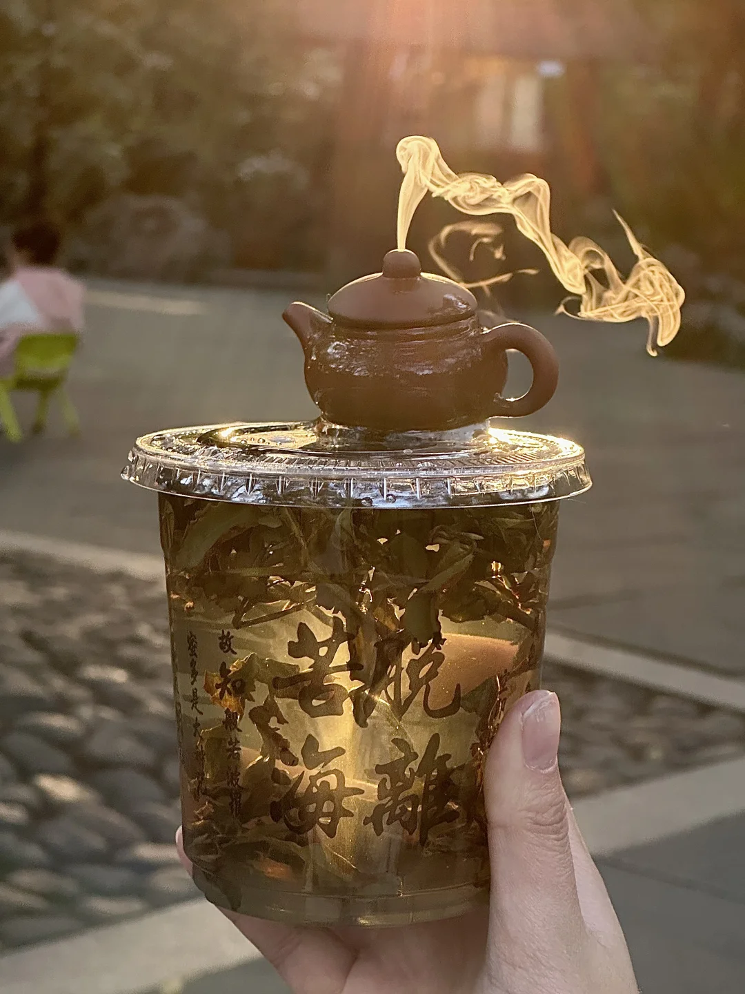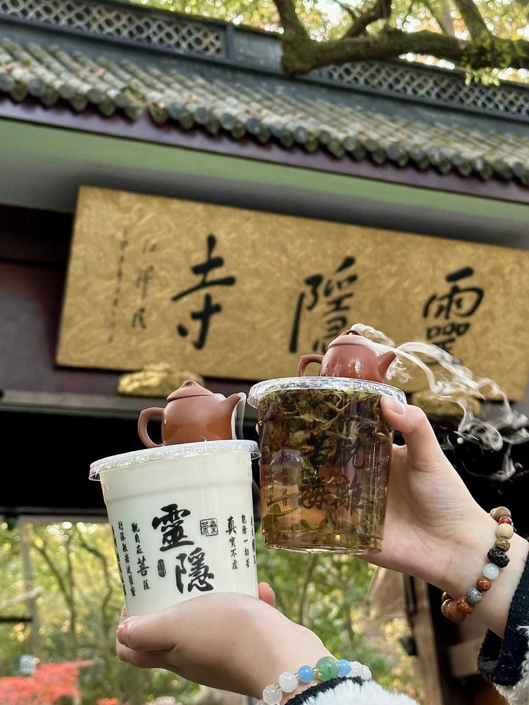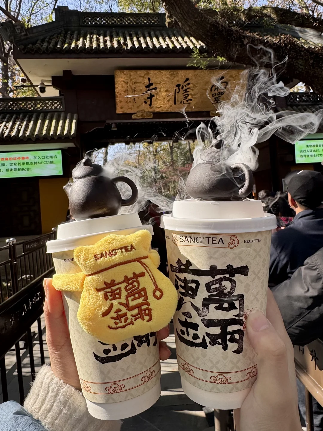 啊啊啊和朋友来灵隐寺还愿 买了杯奶茶 喝了一口没失望!!每杯自配一个小茶壶好特别🫖拿着拍照还能冒烟 真的巨巨出片📷 他家是专门的茶饮店,茶特调茶拿铁都很有特色!叫:桑茶) 我太为这杯“黄金万两”着迷了!!淡黄色的杯身充满禅意~小葫芦也很拉风!上高铁被路人追问了一路在哪买的😅