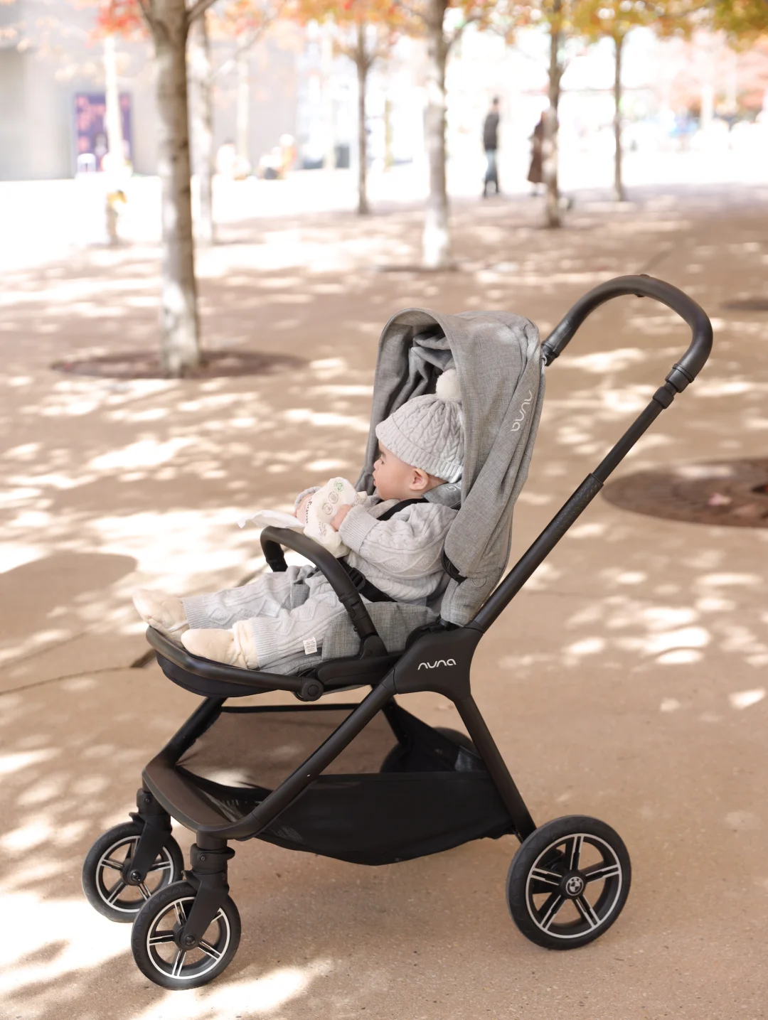 当然现在还多了遛娃的环节,想带她一起感受四季美好!提前很久就准备好这台Nuna TRIVnext婴儿推车。入手的是宝马联名款,阳光洒在推车的小 logo上,和宝宝的笑脸一样亮眼,推上它和我一起美美出门吧!