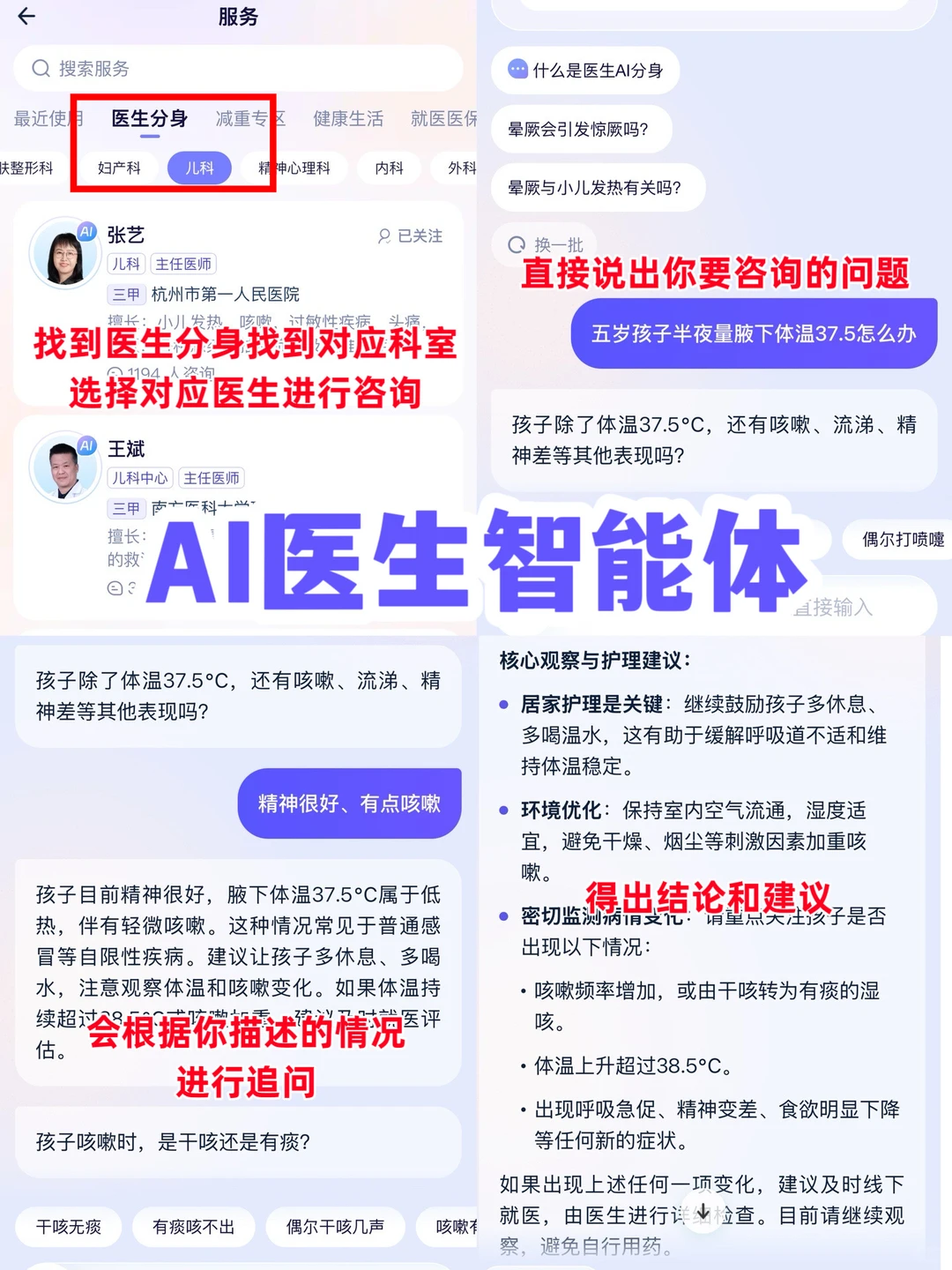 点右上角【智能体】选儿科,填完发烧的症状,3分钟就37℃算发烧吗还是37°5算发烧吗出详细建议:37.5℃略高正常范围,不用太担心,针对娃积食发烧症状具体情况给了明确指引——每4小时测温,盯紧体温变化、精神食欲,留意寒战、手脚凉等升温前兆;日常通风减衣、补够水分,超38℃可温水擦浴物理降温,超38℃或异常及时就医,退烧药备着但需遵医嘱。