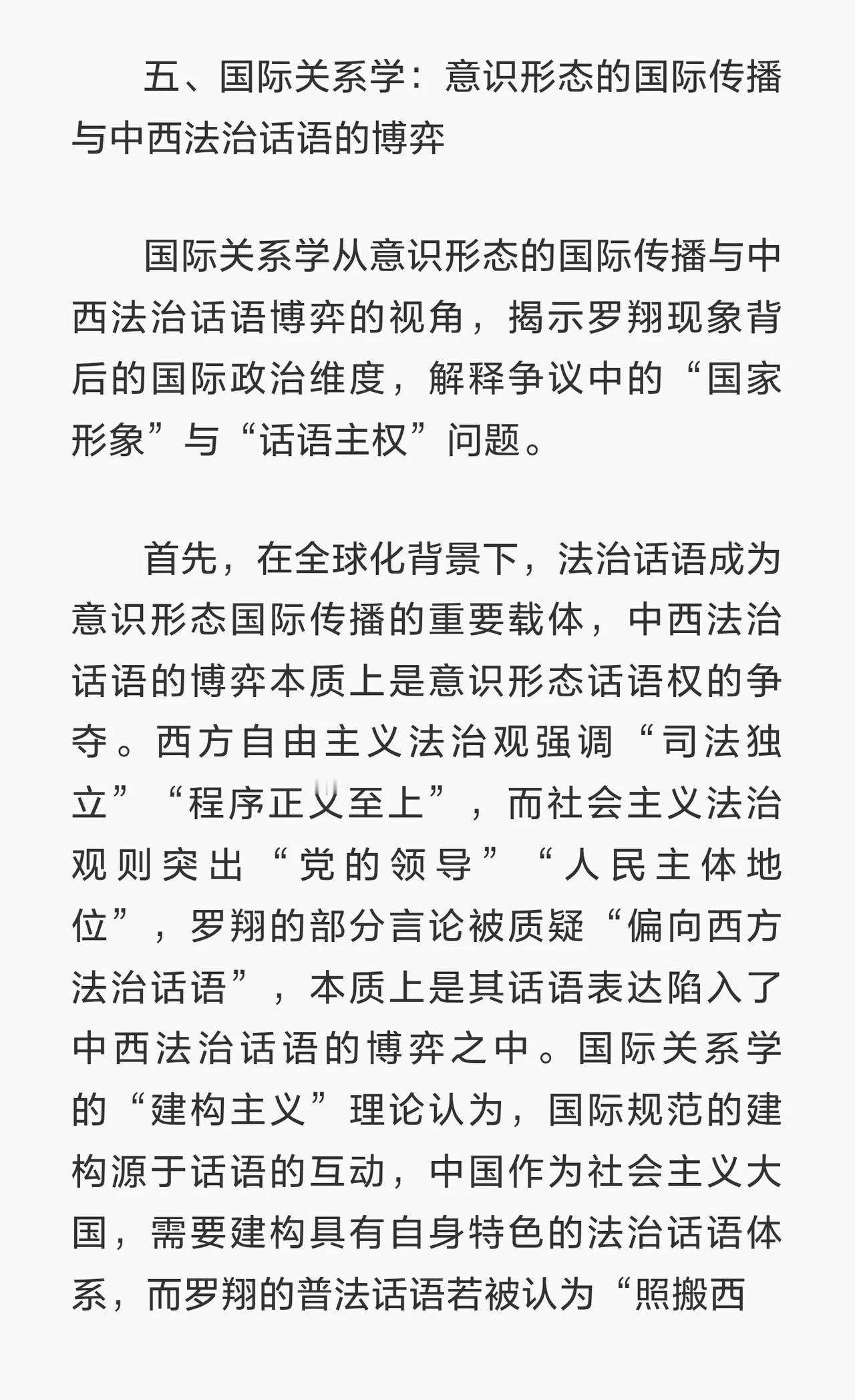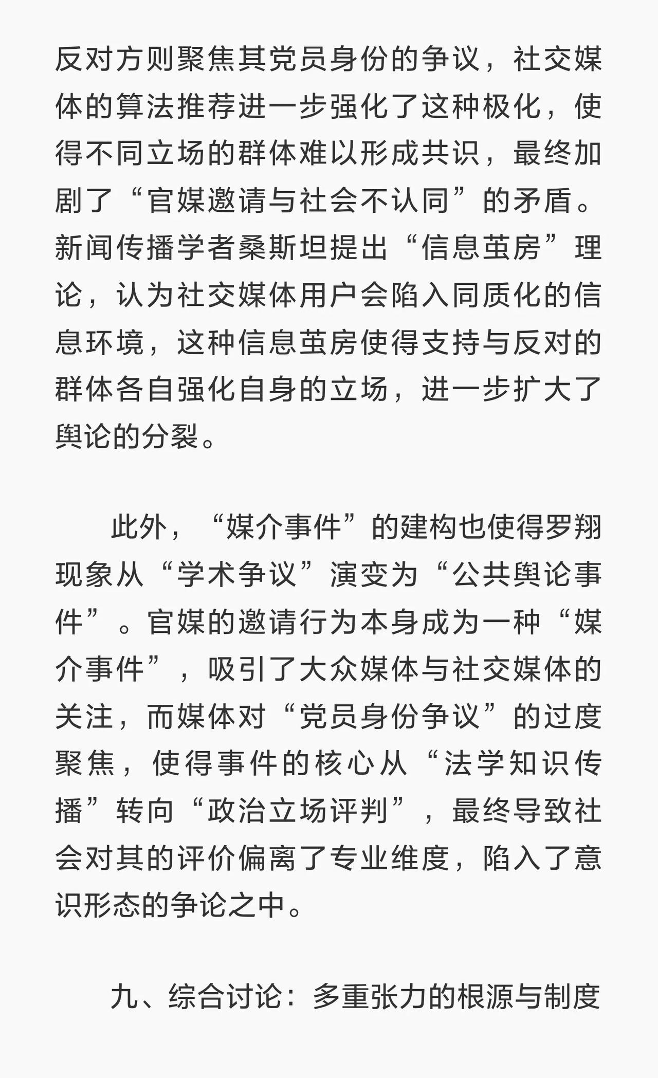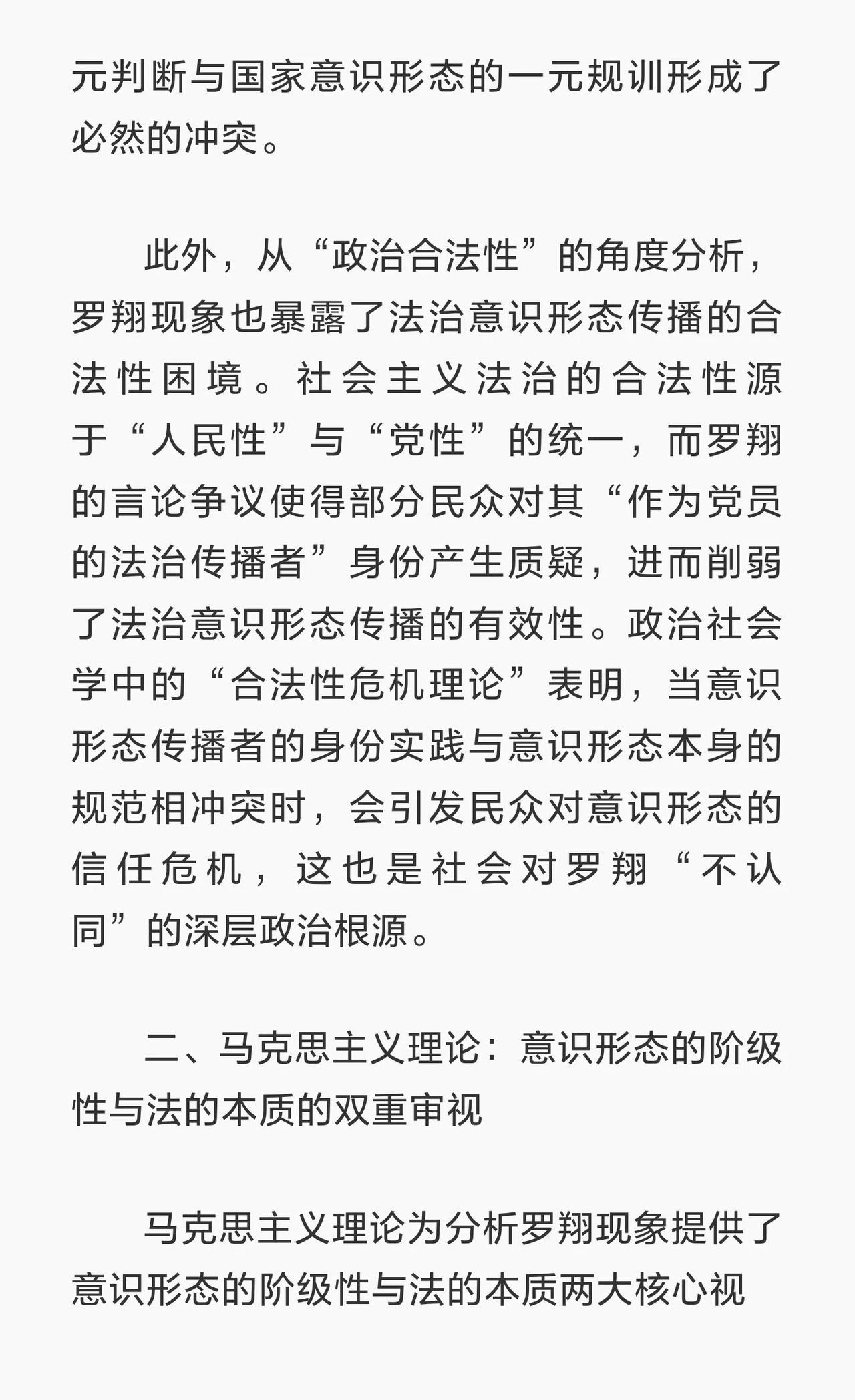 罗翔现象的跨学科审视:官媒邀请与社会认同 罗翔现象揭示了中国社会在意识形态治理、学术规范、法治建设、身份认同等领域的深层矛盾,涉及党员身份、学术自由、法治传播等多重张力。通过跨学科审视,需完善制度调适,平衡规训与自由,协调国家与社会,推动法治传播与意识形态建设的协同发展。