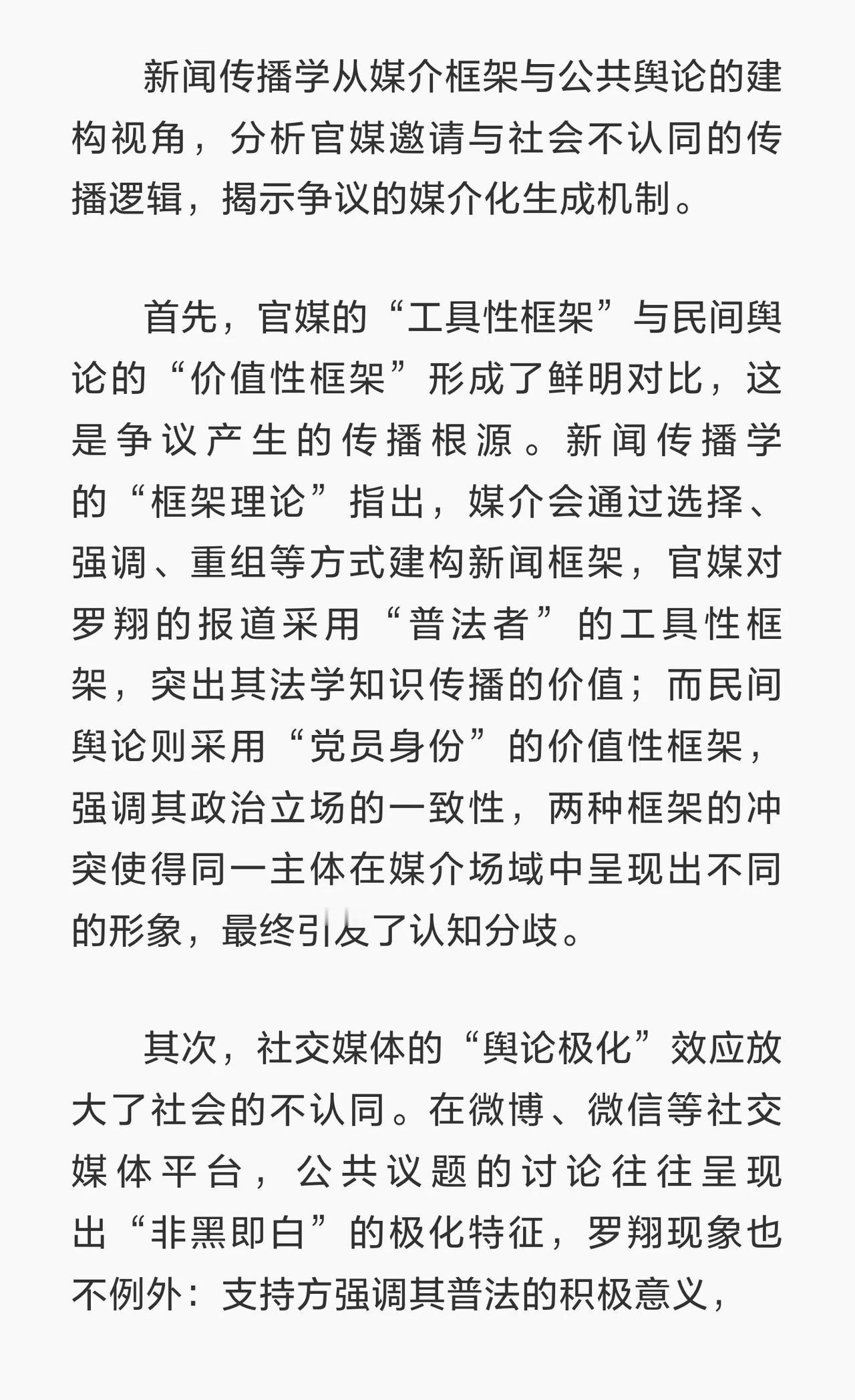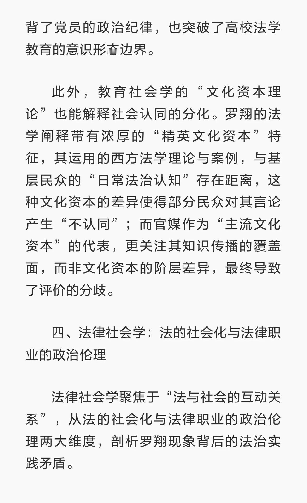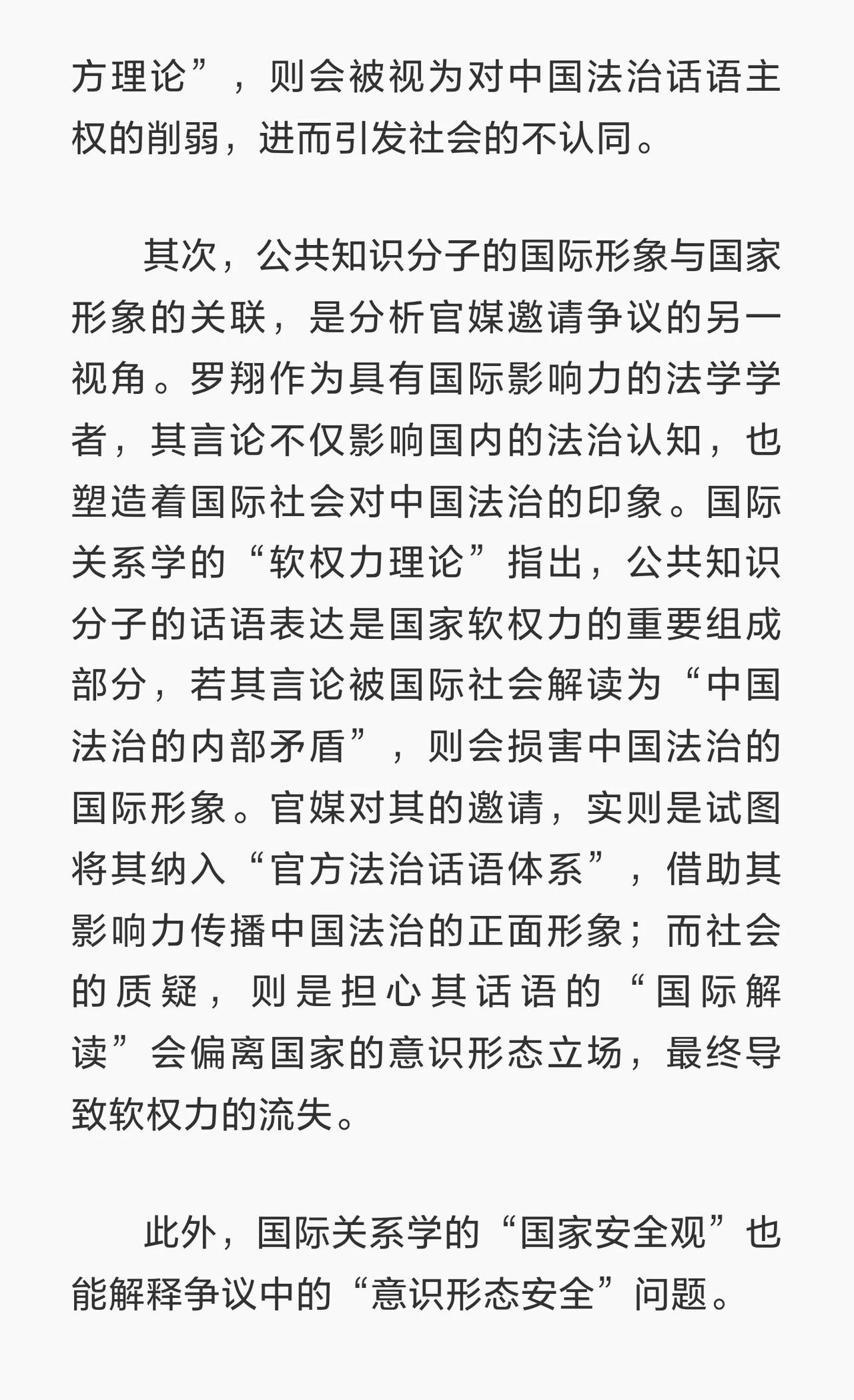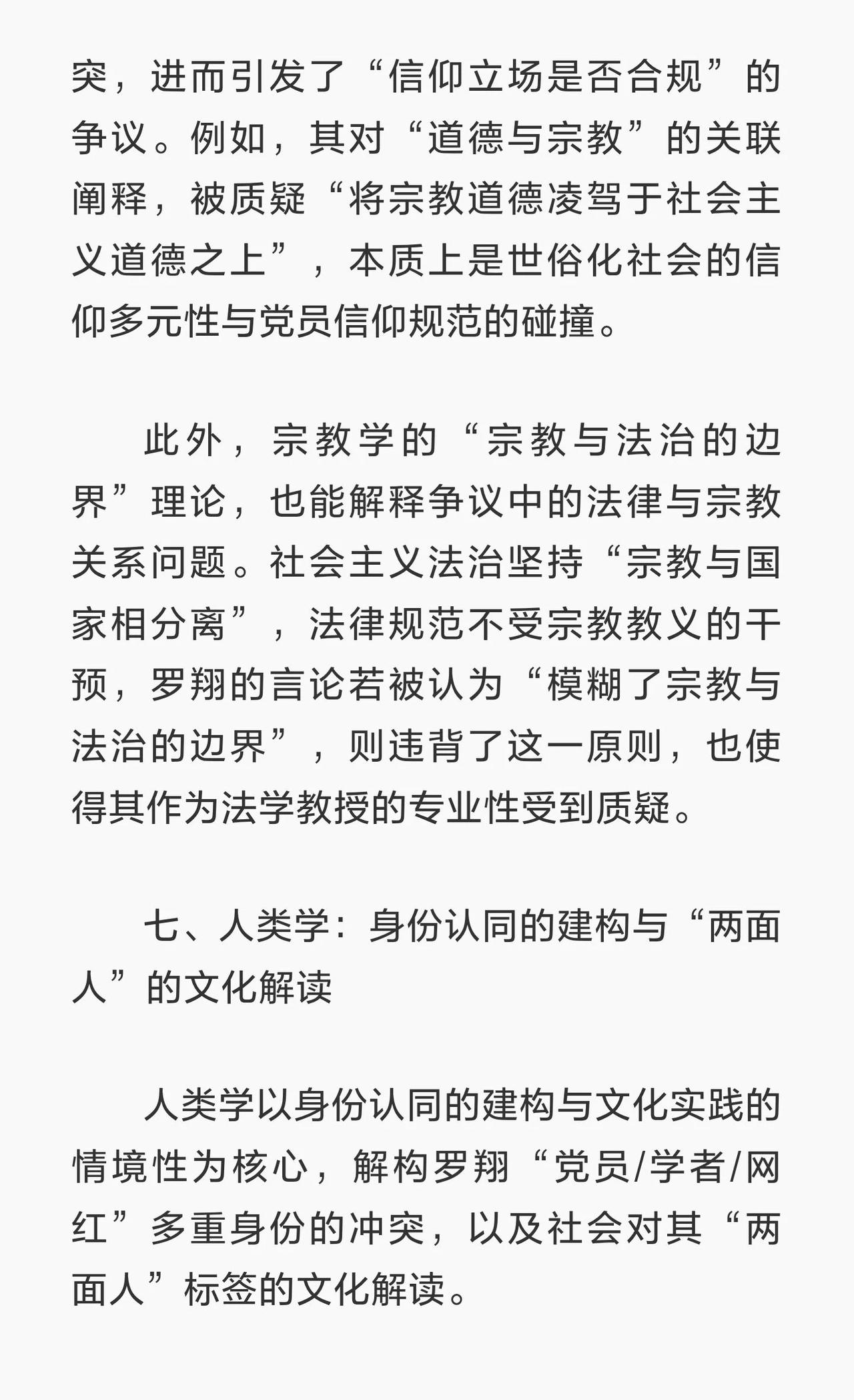 罗翔现象的跨学科审视:官媒邀请与社会认同 罗翔现象揭示了中国社会在意识形态治理、学术规范、法治建设、身份认同等领域的深层矛盾,涉及党员身份、学术自由、法治传播等多重张力。通过跨学科审视,需完善制度调适,平衡规训与自由,协调国家与社会,推动法治传播与意识形态建设的协同发展。