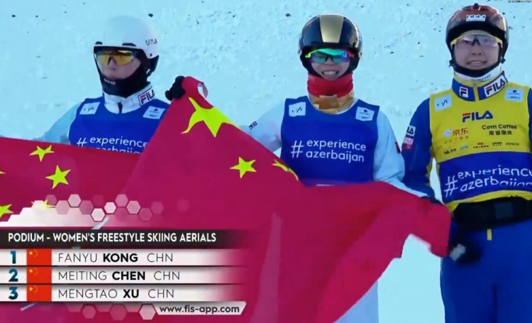 中国选手陈梅婷97.45分摘得银牌,老将徐梦桃97.02分获得铜牌,中国队包揽金银铜。