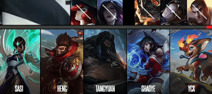 LGD选用:sasi乌迪尔;Heng猴子;Tangyuan阿狸;Shaoye小火龙;Ycx卡尔玛