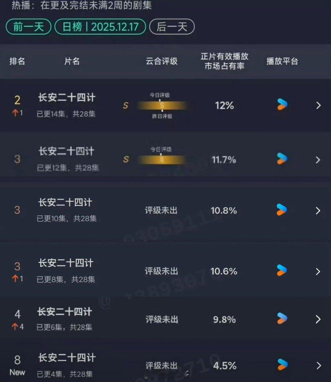 成毅长安二十四计拉新年榜13名哦哟,又是被成毅的号召力惊艳到的一天啊,成毅《长安二十四计》进拉新年榜后,几天连涨。现在已经到拉新年榜13名了,不愧是粉丝心中的大男主啊~成毅长安二十四计拉新年榜连涨