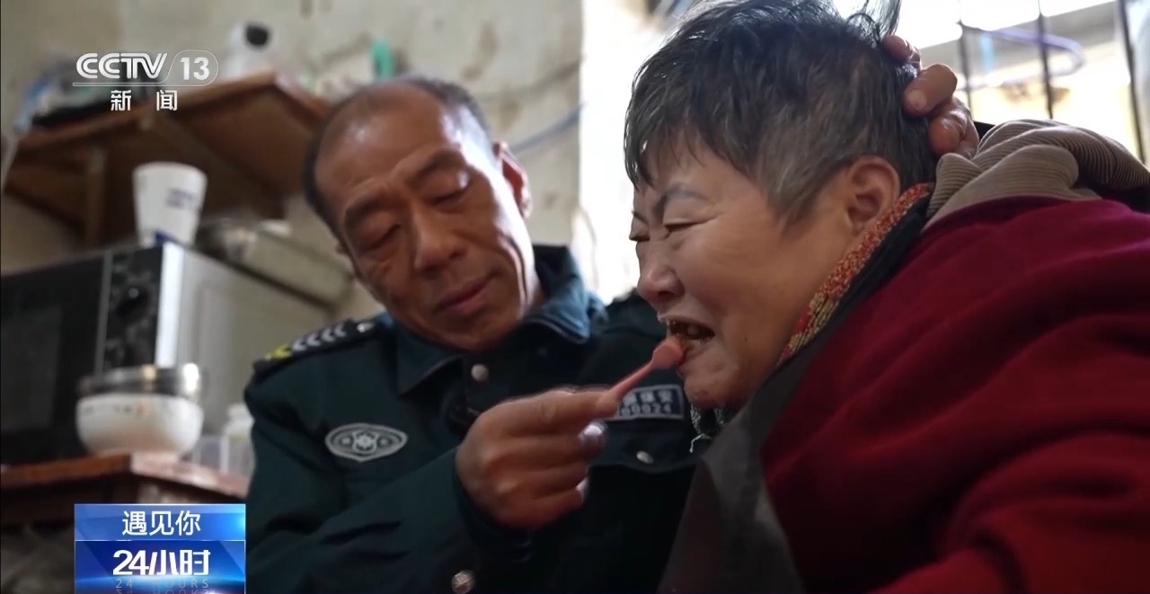 一直忙活到九点多,把老伴安顿妥当后,老李又匆匆赶回岗位,继续他的保安工作。为了能一边工作一边看护老伴,他在屋里装了摄像头,执勤间隙也常常打开手机,留意家中的动静。日复一日的陪伴与照料,让老李和无法言语的老伴之间,有了一套快速沟通的“手势”。如今,只需一个简单的手势,老李便能立刻读懂老伴的心思。