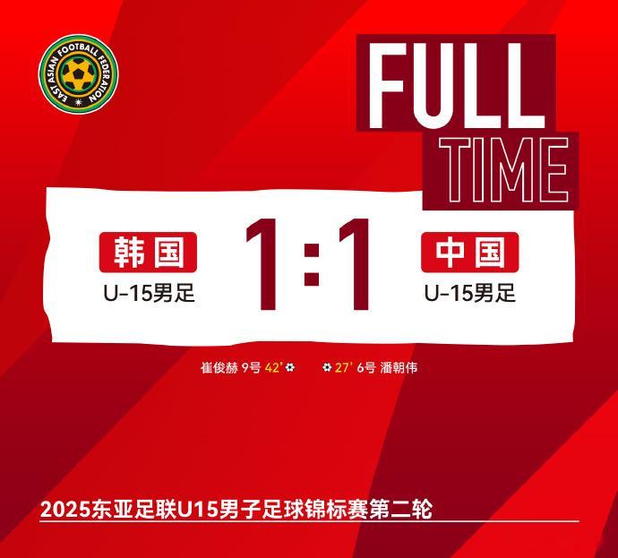 黄健翔写道:U15中国队1-1打平韩国队。韩国队的身体条件好于上一场的对手日本队,并且采取了相对更高位的逼抢,喜欢身体对抗,因此,今天的比赛,中国队更加暴露了技术水平的弱点,传接球成功率很低,拿不住,传不好。全场踢的凌乱。但是由于韩国队的技术战术水平也不如日本队,踢的也比较散乱,所以双方各凭一个定位球得分。运动战中,双方像样的配合都不多。