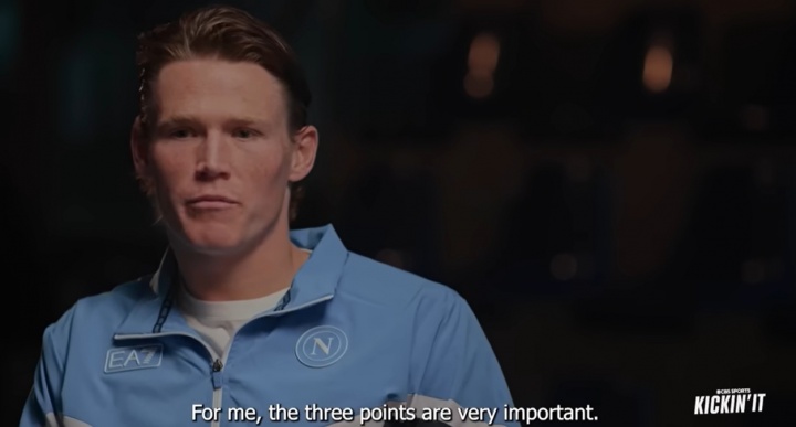 对我来说,感受到球迷的爱、激情和能量,这感觉仍然很不真实。我想这种感觉永远不会消失,这是我对这里人们的感觉。我不太常去那不勒斯市中心,因为人们能认出我的金发,而且我个子挺高,所以他们能发现我。所以在市中心我感受不到太多,但到了比赛日和欧冠之夜,你就能感受到为这样一家俱乐部效力的激情和压力。