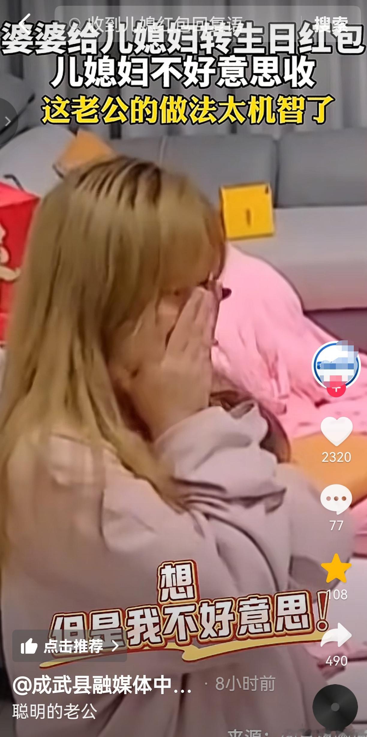 婆婆给儿媳妇发红包,媳妇不好意思收,老公的做法太聪明了,值得学习: 视频里,一