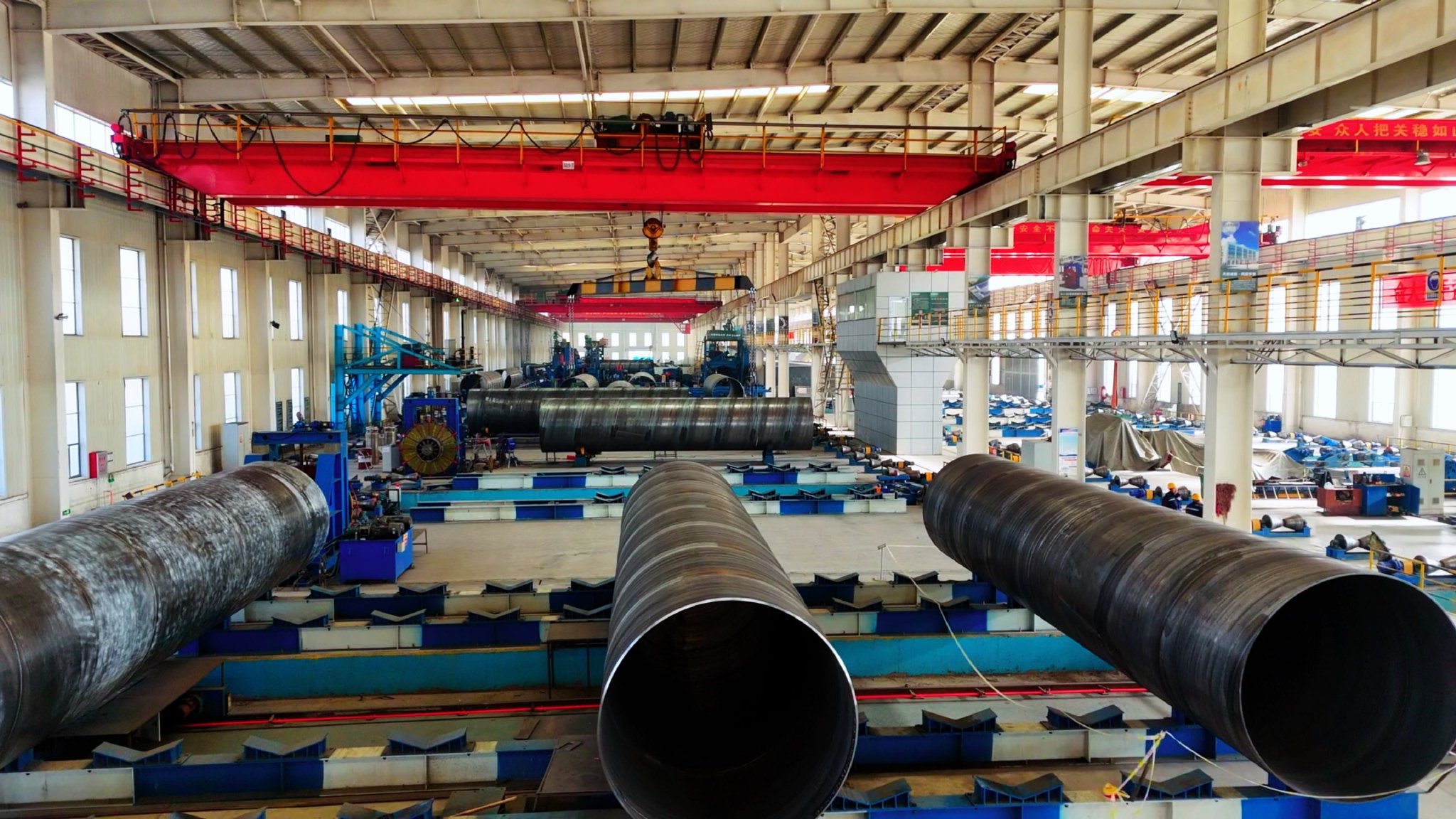 图为内蒙古鹿景金钢实业(集团)有限公司大口径螺旋钢管生产建设现场。刘震摄