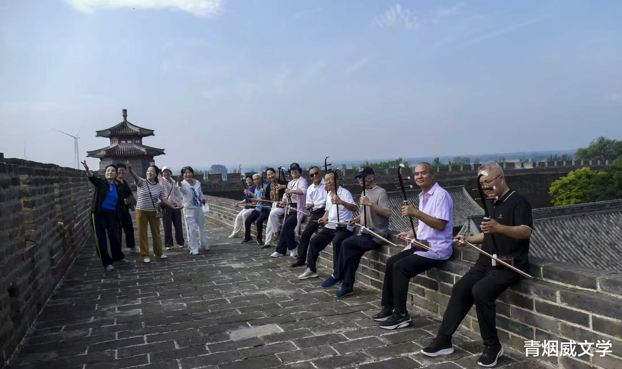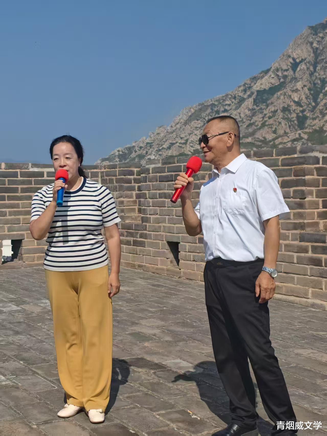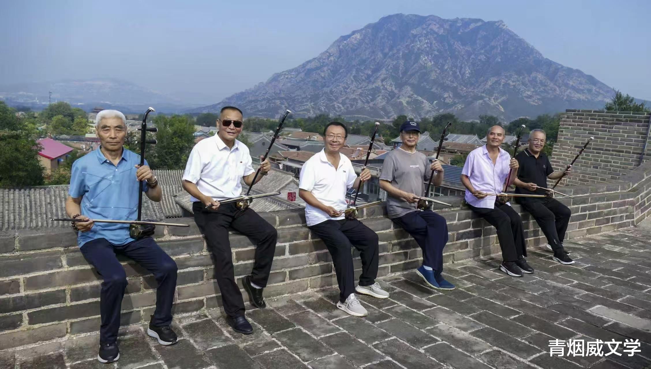 清晨的阳光暖暖地洒在了鸡鸣驿的古长城上,灰色的城墙发着灼灼青光,站在城墙上,远处的美景尽收眼底,这绿意盎然海棠点红的秋色里,怀来老年大学二胡班的师生们,穿着自己漂亮的服装,带着心爱的乐器,在古长城上开启了一场以“二胡声声庆十一,古驿长城聚友谊”为主题的户外活动课。这场活动不仅是一次教学成果的展示,也融合了唱歌,戏剧的表演。乔树英和白会英为大家带来了音响和话筒,由此城墙上开启了音乐演唱会。虽然没有充分的准备,但演唱者尽显声情并茂,唱的微风悄然,飞鸟忘情!师生们在纵情地合奏,合唱,琴声歌声在城墙上空飘荡,形成了二胡艺术与自然美景的完美融合,在大自然的怀抱中奏响唱响了老有所学的动人乐章。