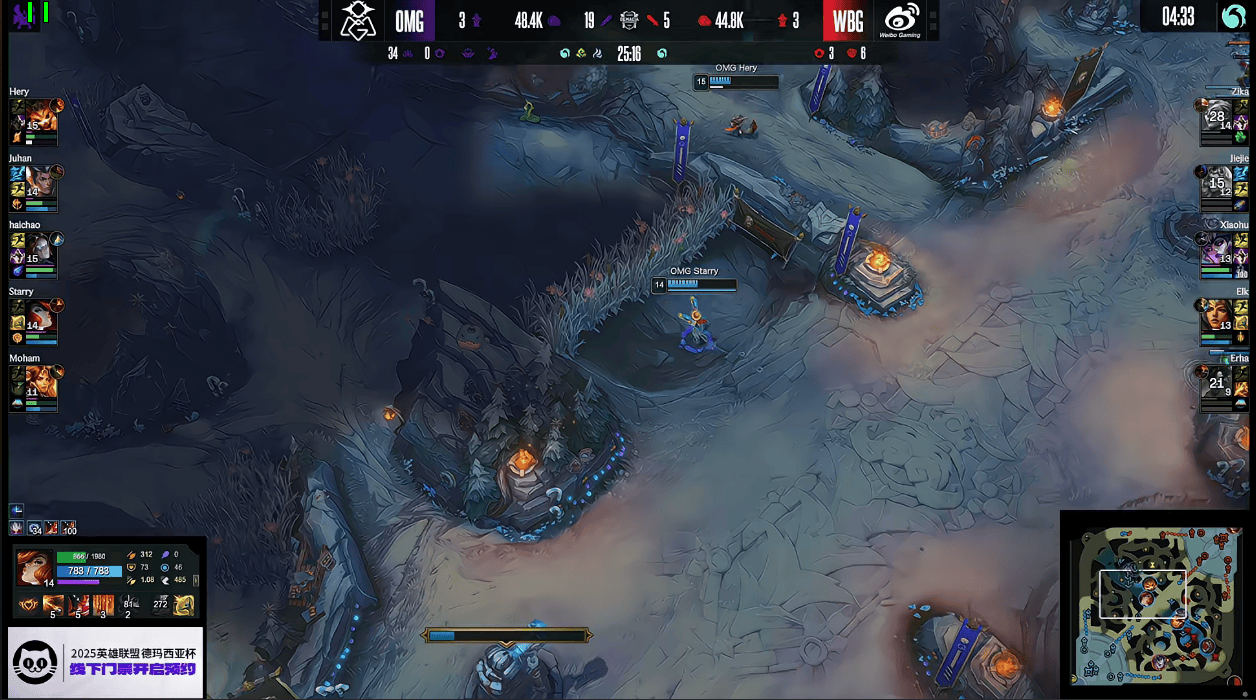 25分钟,Starry伤害依旧爆炸助力OMG轻松打赢团战