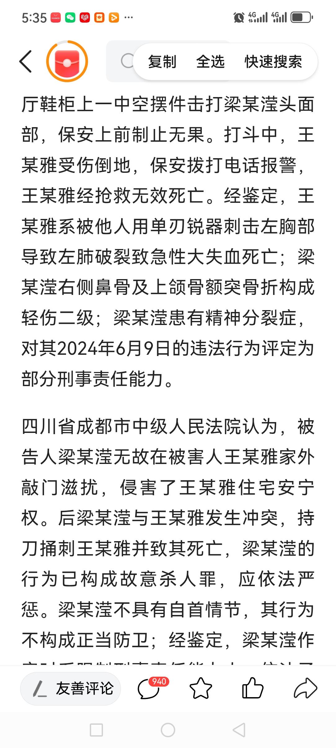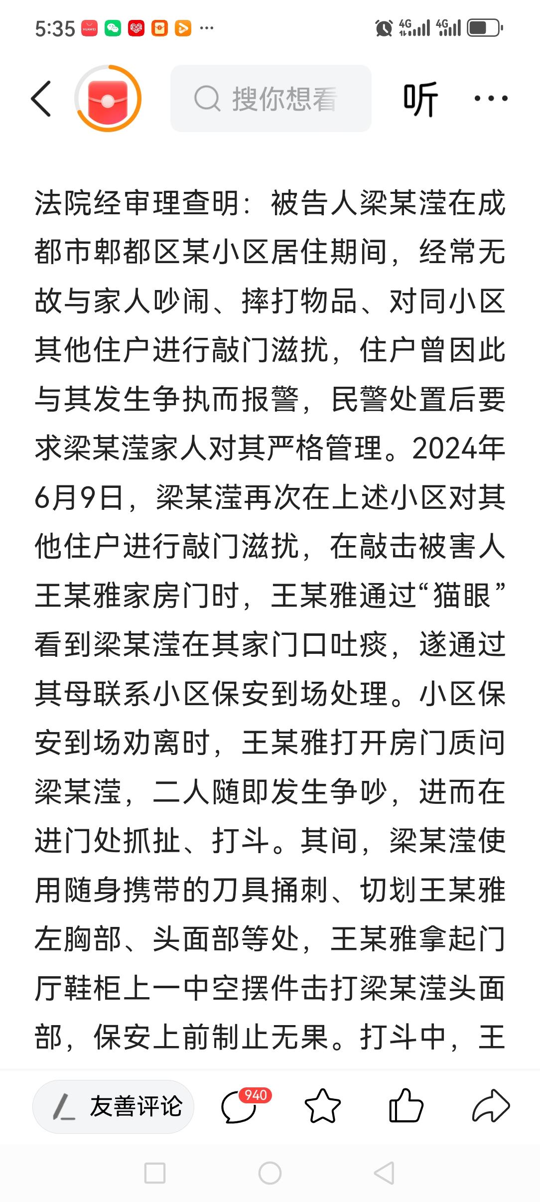 紫雅的案件终于宣判了,被告人梁某被判了死缓。 紫雅妈妈将要申请抗诉,只是不知道被告人会不会上诉? 看了案件的详细报告才知道,被告人的确有精神疾病,经常无故敲打小区其他住户的家门,被其他邻居多次报警。 这事怪就怪她的父母 ,叔叔数次警告让她家人严加管教,但她的父母都没有当成事,依然放纵她外出,才酿成了大祸。 如果她父母早带她去医院检查,让她在医院住院观察治疗,完全可以避免这件事情的发生。 如果真的确认了她有精神疾病,即使紫雅妈妈抗诉,也起不了太大的作用。 紫雅妈妈完全可以控告她的父母失职,没有做好监护,胜诉几率可能还会大一些。