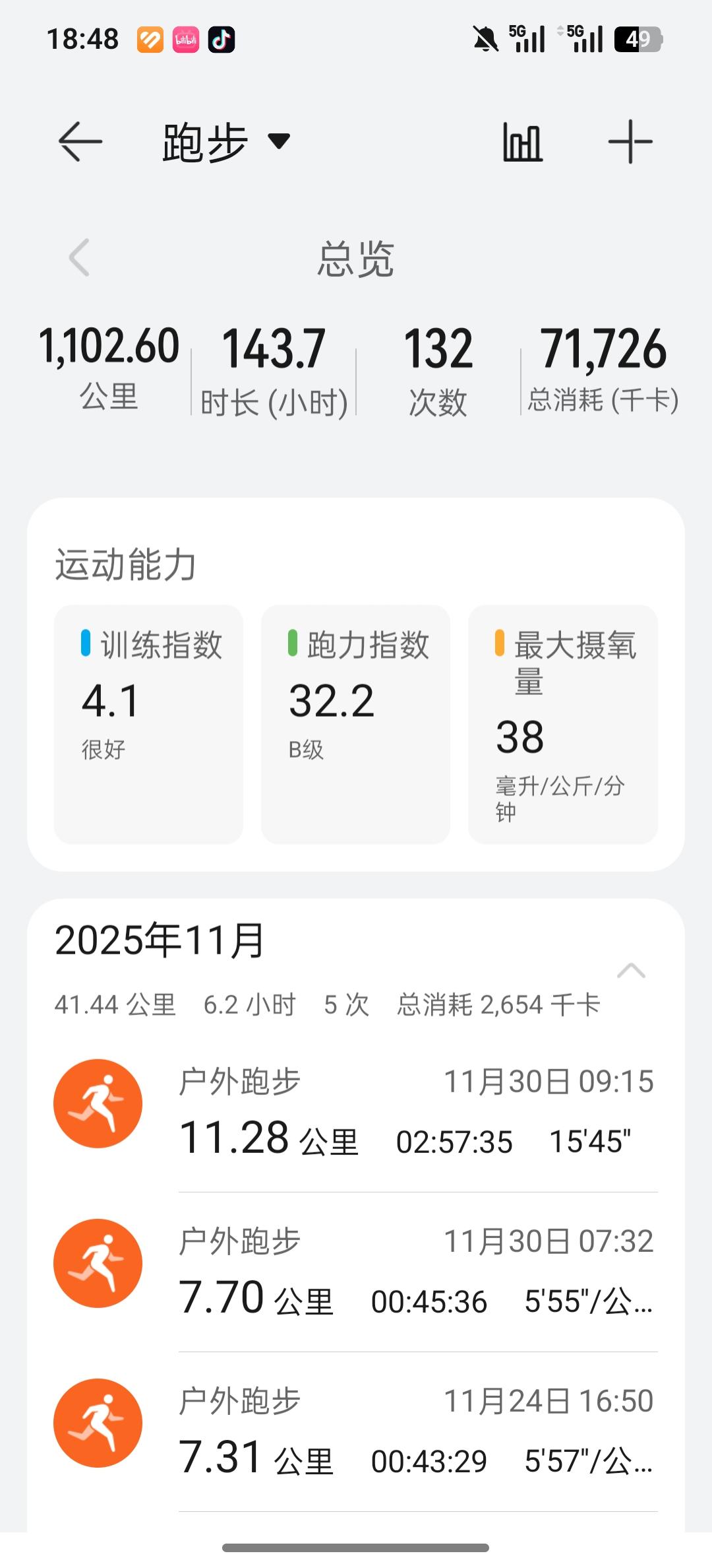 跑友们,来交换你的2025年终跑量!2025我一共跑了 1102.6KM先跑再说