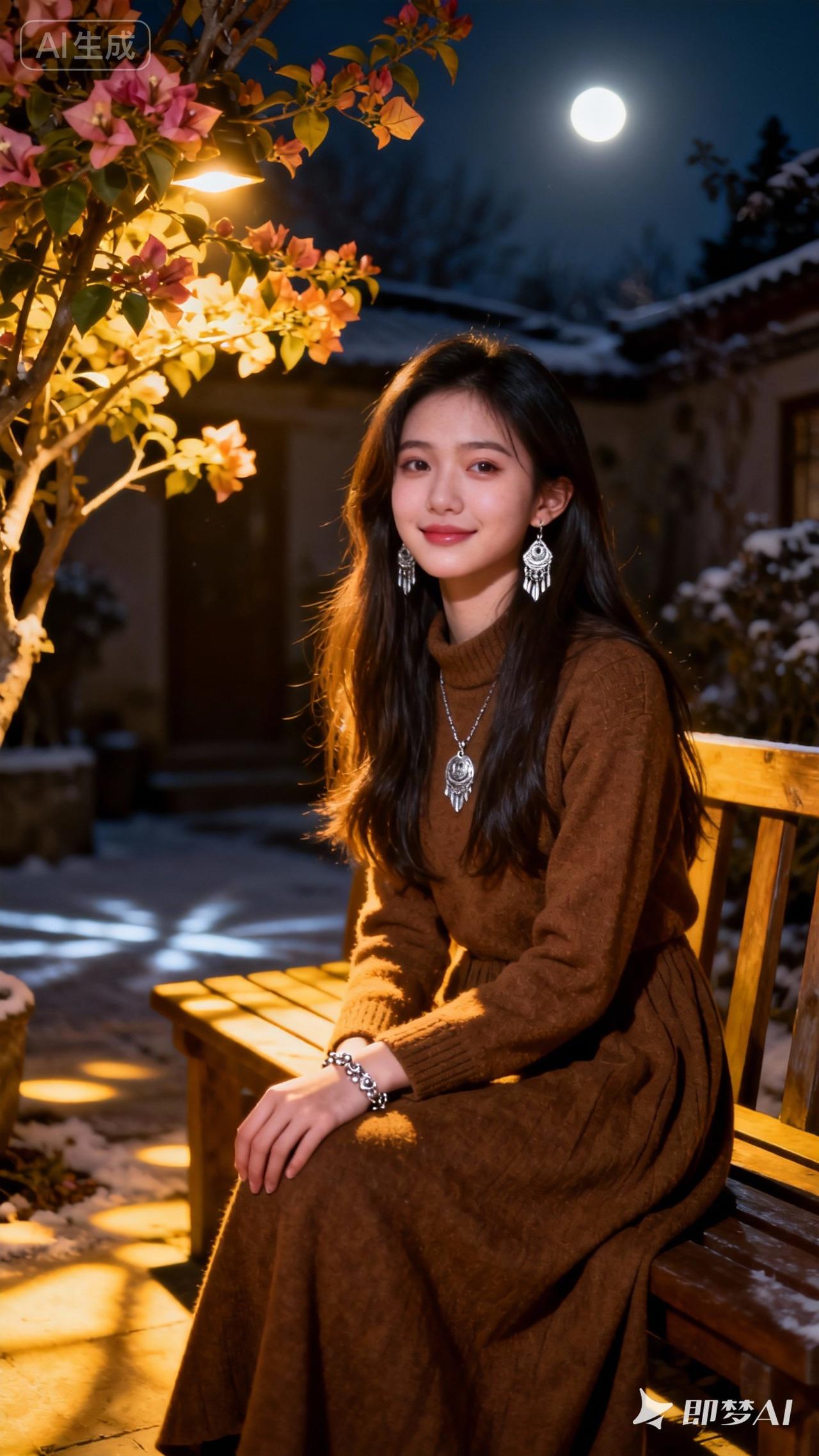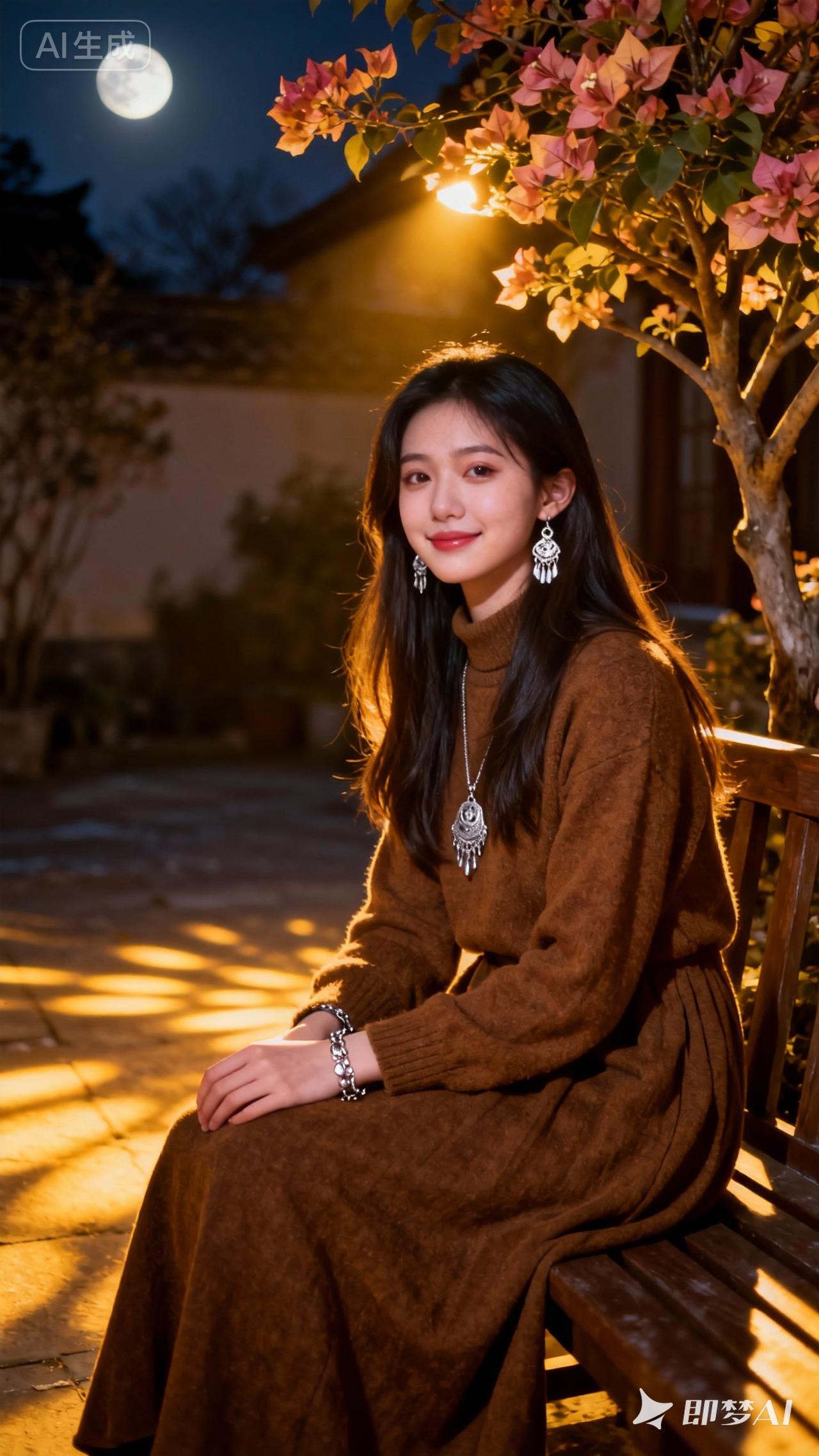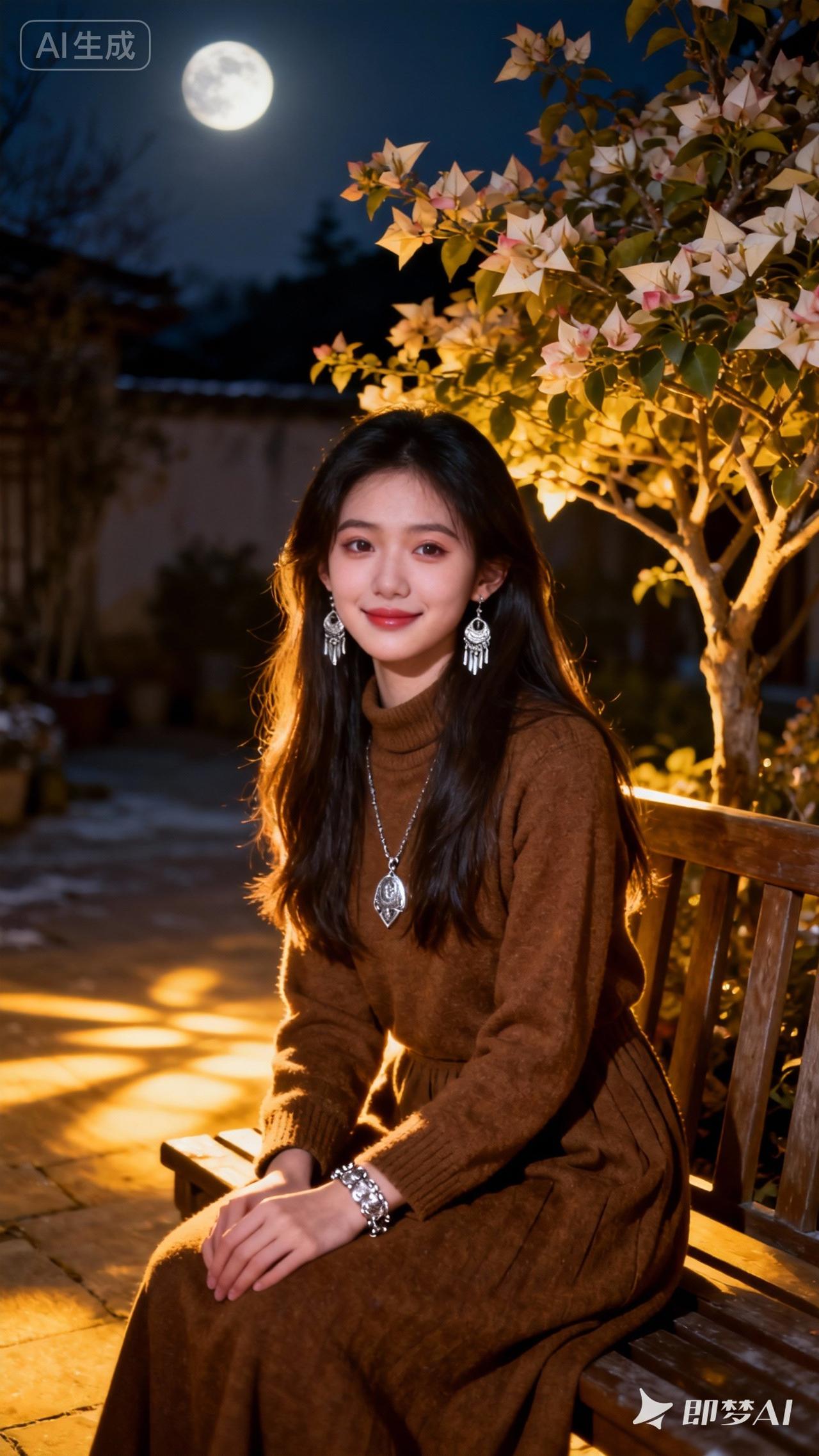 冬日暖阳下,少女与月色相伴,静谧美好。