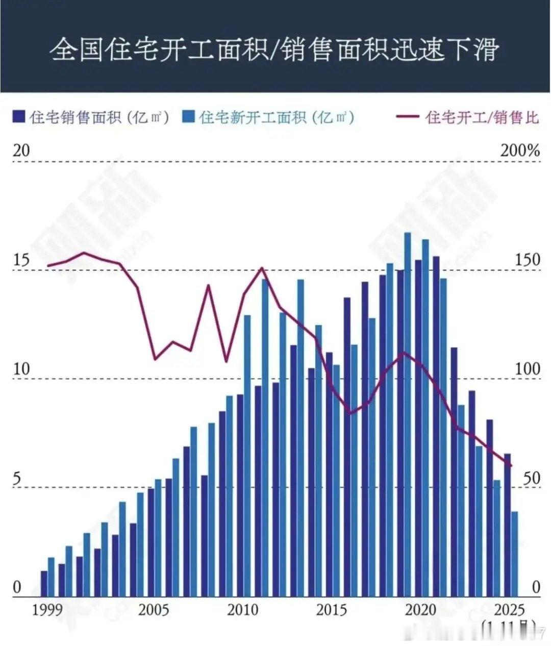 2025前11个月全国住宅新开工面积跌至3.92亿平方米,较2019年高点萎缩大约70%以上,相当于20年前(2003年)的水平。还不够低呀。其实现在只有央行才能救地方财政了,如果一直不救,最终还是地方承担,那压力就很大。