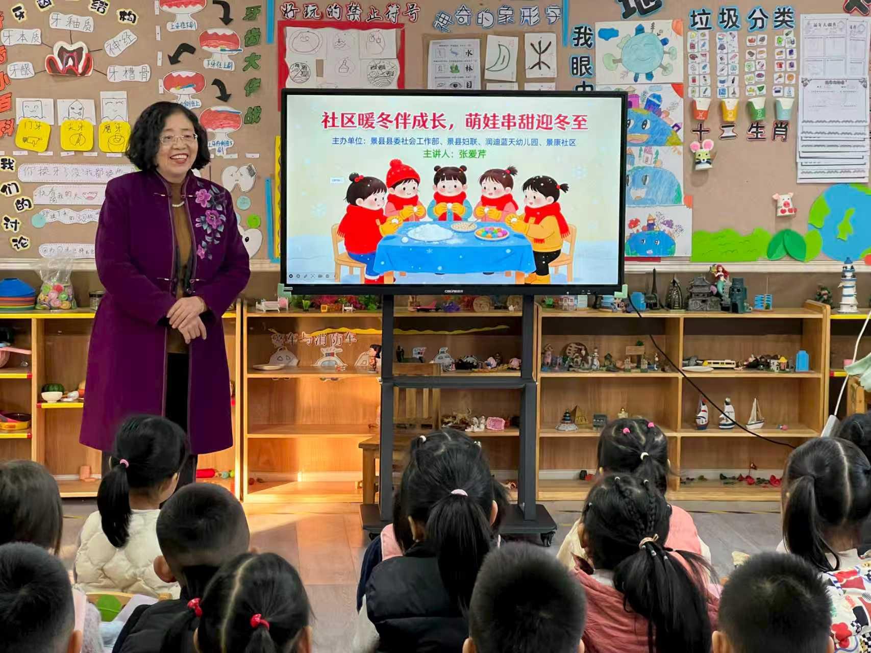 活动现场,工作人员准备了红润的山楂、鲜亮的水果、整齐的竹签与晶莹的冰糖。大家分工协作,洗果、串签、熬糖……忙碌中洋溢着喜庆与温馨。不一会儿,一串串晶莹剔透的冰糖葫芦就做好了,散发出诱人的香甜。与此同时,景康社区某幼儿园里正在开展一场别开生面的“冬至文化小课堂”,国家二级心理咨询师张爱芹向孩子们讲述冬至的由来与习俗。孩子们听得入神,不时举起小手发问。随后,社区工作人员将刚做好的冰糖葫芦送到每个孩子手中。孩子们顿时笑开了花,迫不及待地品尝起来。那一刻,传统节气不只是书本上的字句,而变成了可尝可感的切实体验。