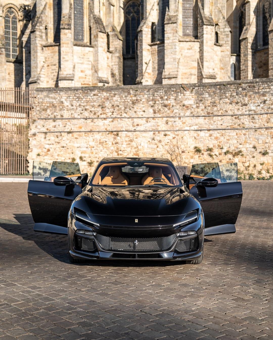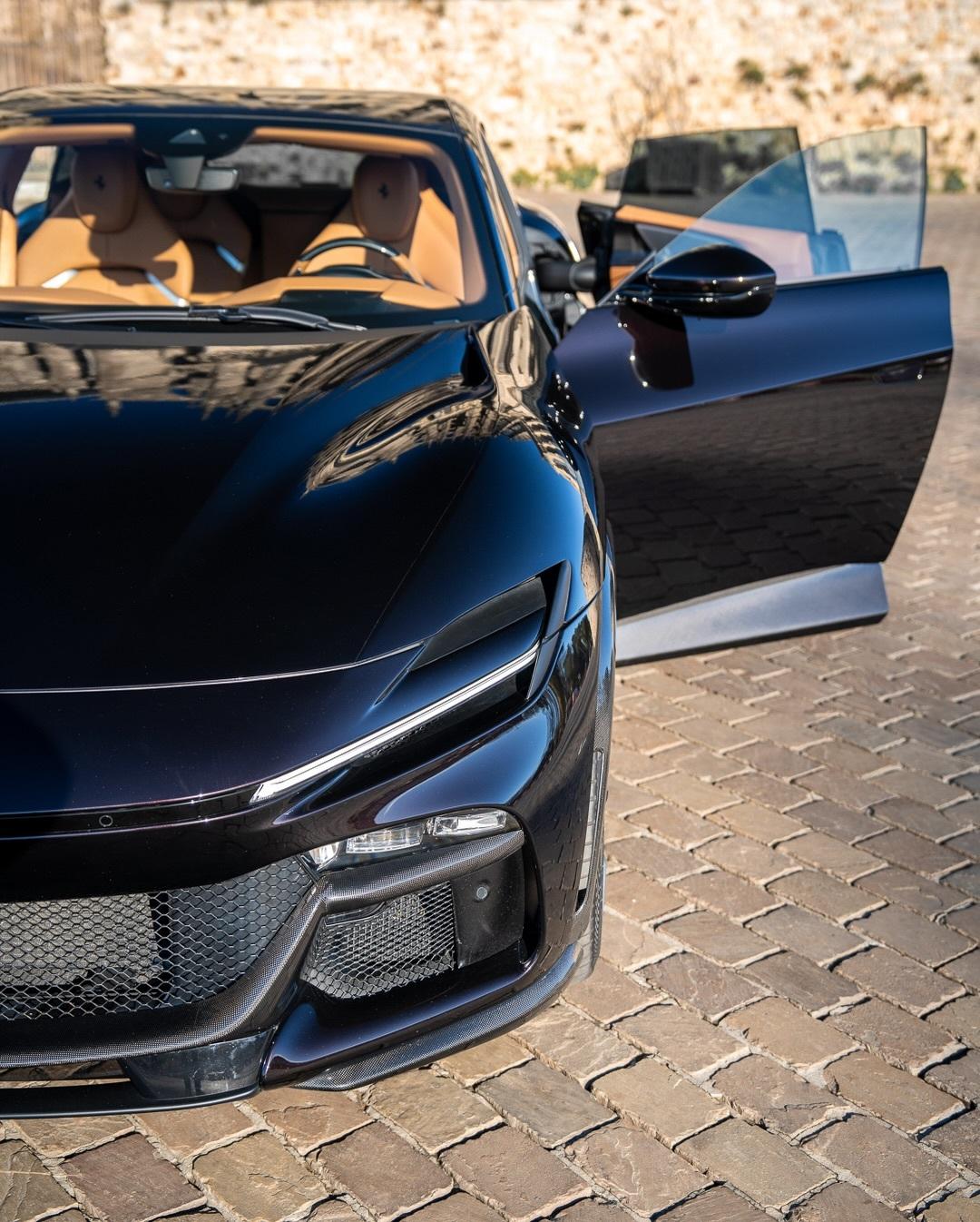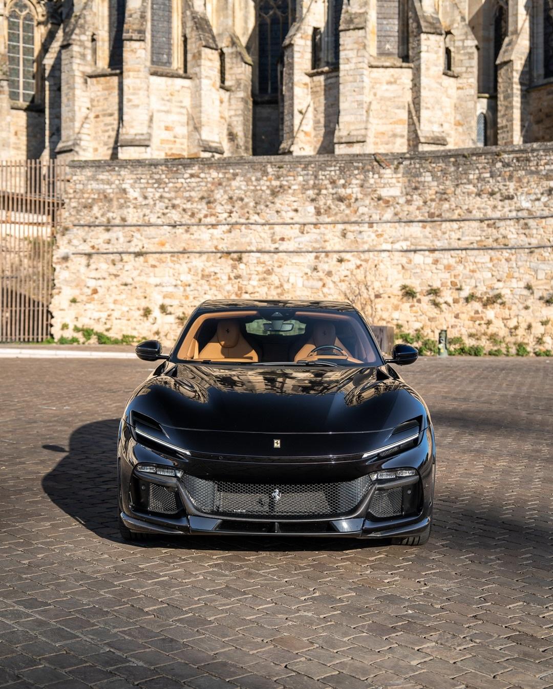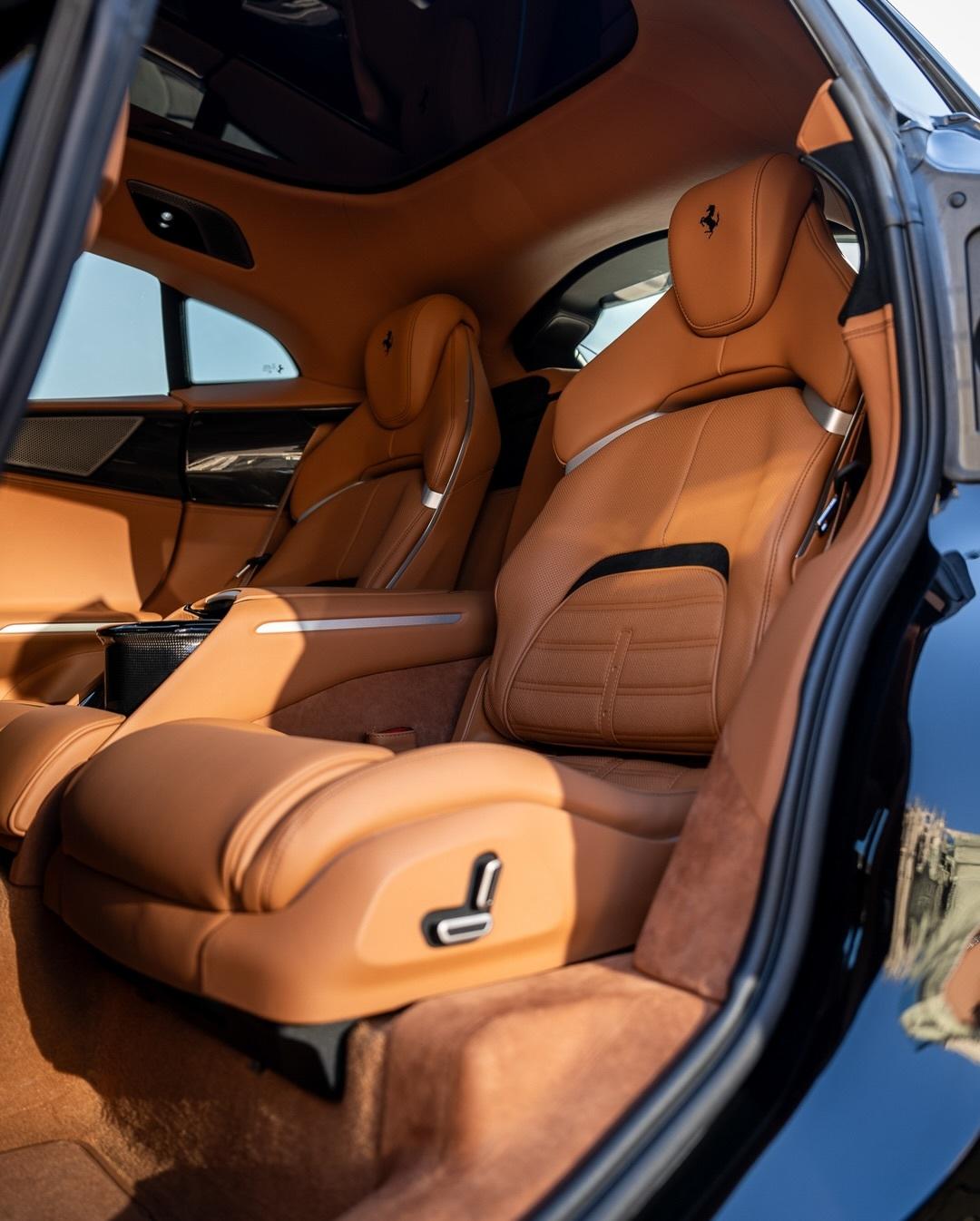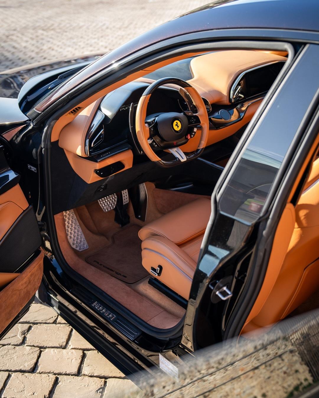 法拉利Purosangue,车身采用Purosangue黑色涂装,搭配全套碳纤维外观套件,为雕塑感十足的车身线条增添了低调却鲜明的运动气质。前翼子板上喷绘的法拉利车队徽标致敬品牌的赛车传承,而摩德纳黄色的刹车卡钳则形成精致的撞色效果,凸显出车型的动感气场。 内饰采用赭色皮质打造,营造出温暖而考究的氛围,辅以多处碳纤维选装件更显质感。集成LED灯的碳纤维方向盘、碳纤维中央通道以及其他碳纤维细节设计,既彰显了Purosangue以性能为核心的理念,又保持了极致的优雅与工艺水准。