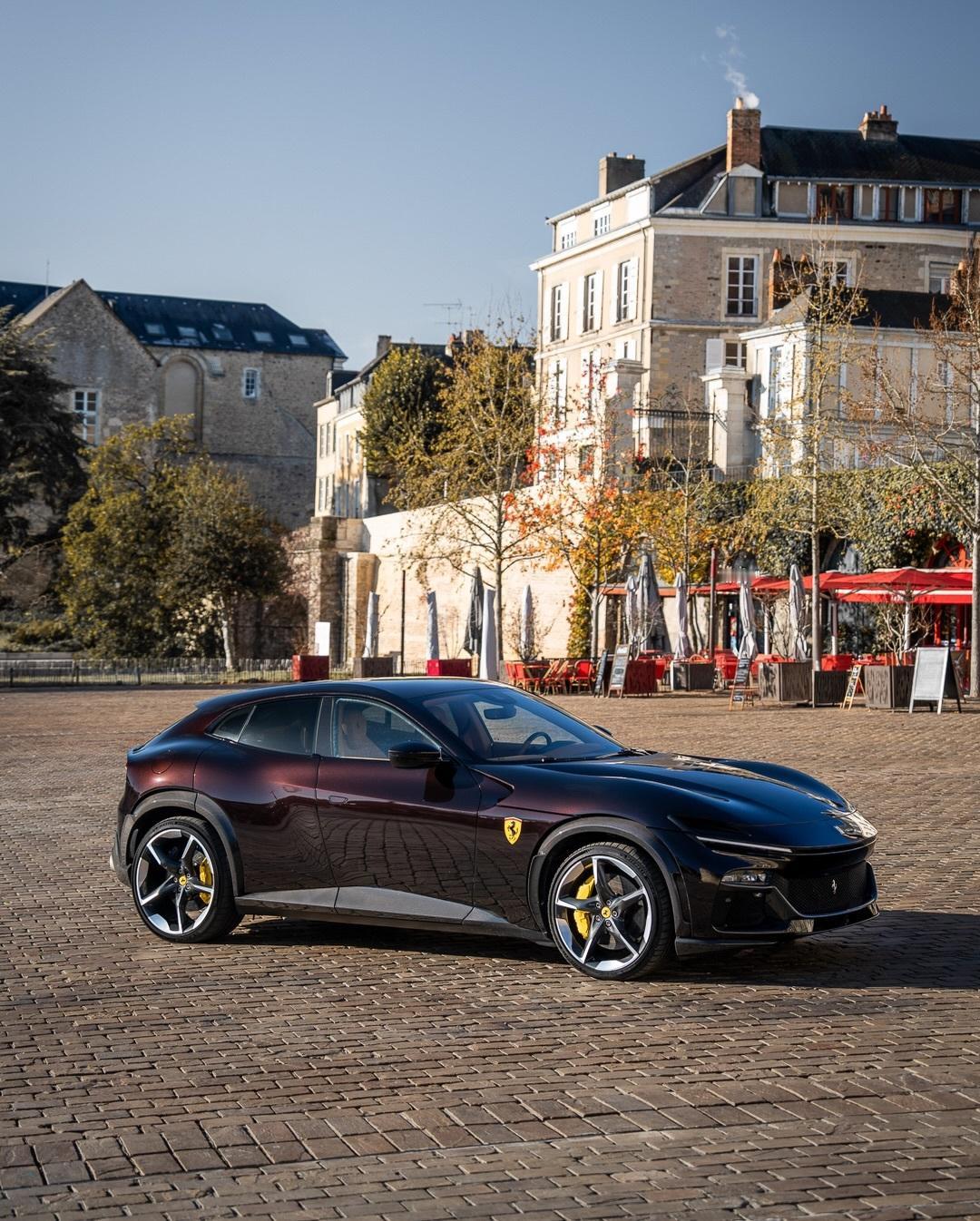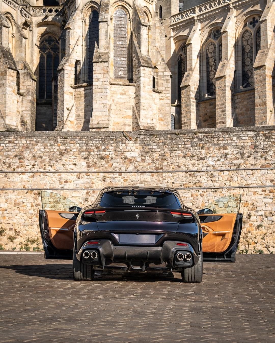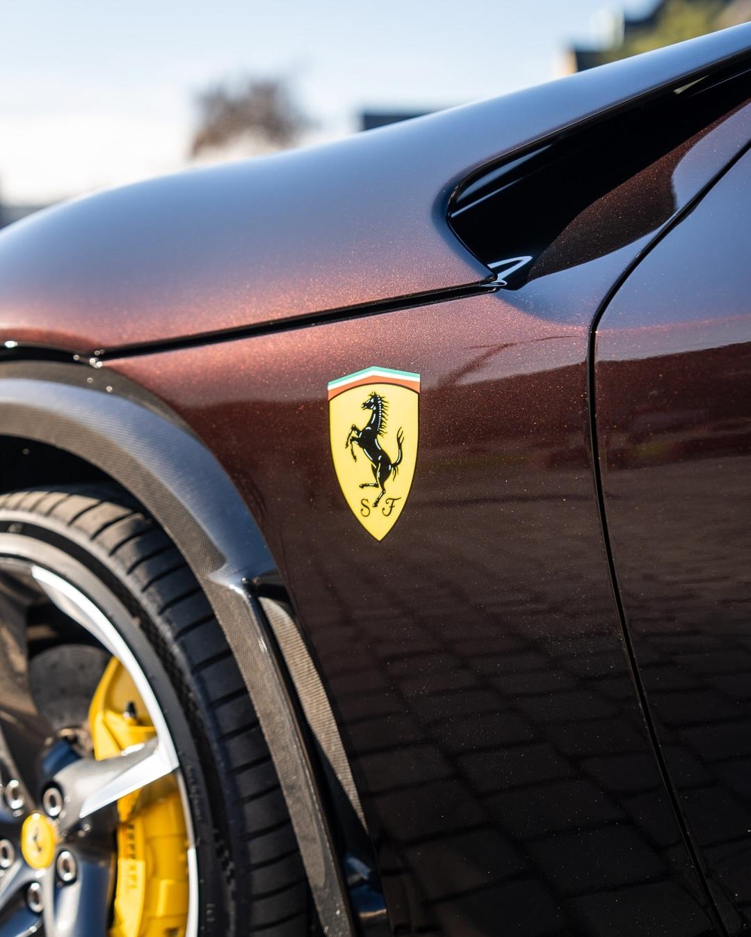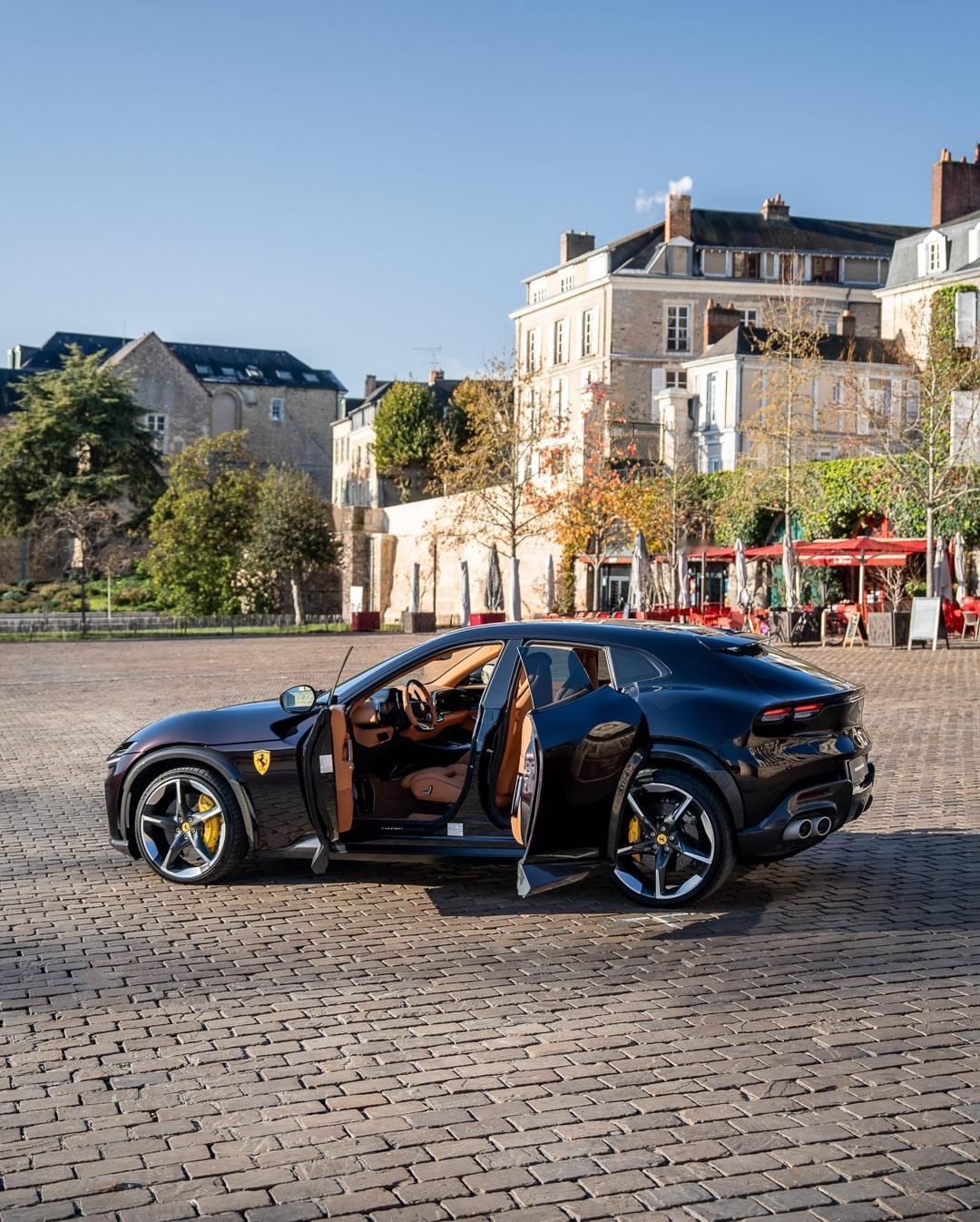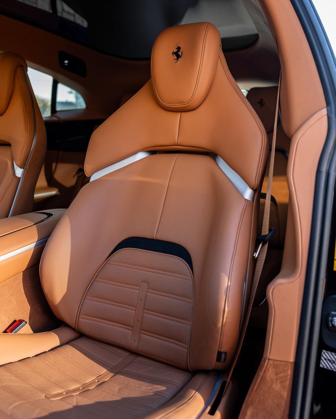 法拉利Purosangue,车身采用Purosangue黑色涂装,搭配全套碳纤维外观套件,为雕塑感十足的车身线条增添了低调却鲜明的运动气质。前翼子板上喷绘的法拉利车队徽标致敬品牌的赛车传承,而摩德纳黄色的刹车卡钳则形成精致的撞色效果,凸显出车型的动感气场。 内饰采用赭色皮质打造,营造出温暖而考究的氛围,辅以多处碳纤维选装件更显质感。集成LED灯的碳纤维方向盘、碳纤维中央通道以及其他碳纤维细节设计,既彰显了Purosangue以性能为核心的理念,又保持了极致的优雅与工艺水准。