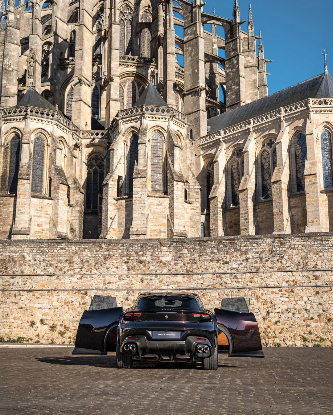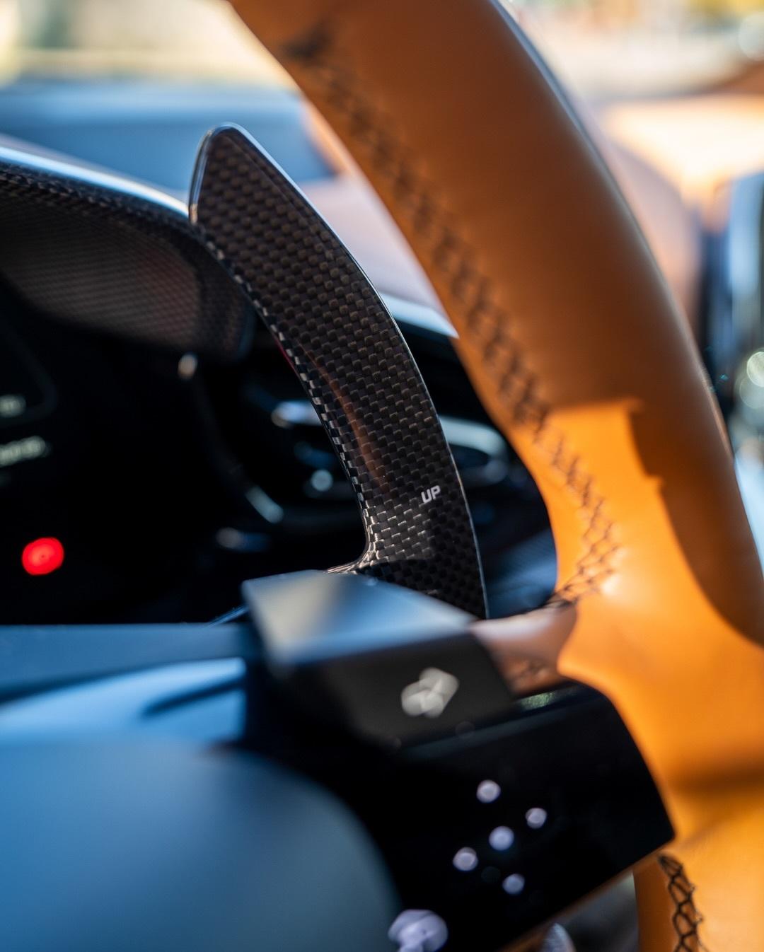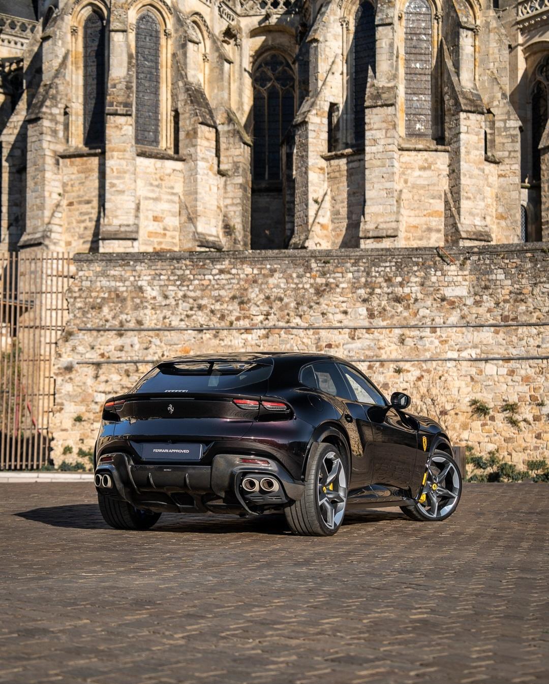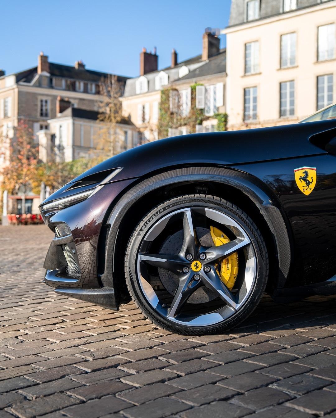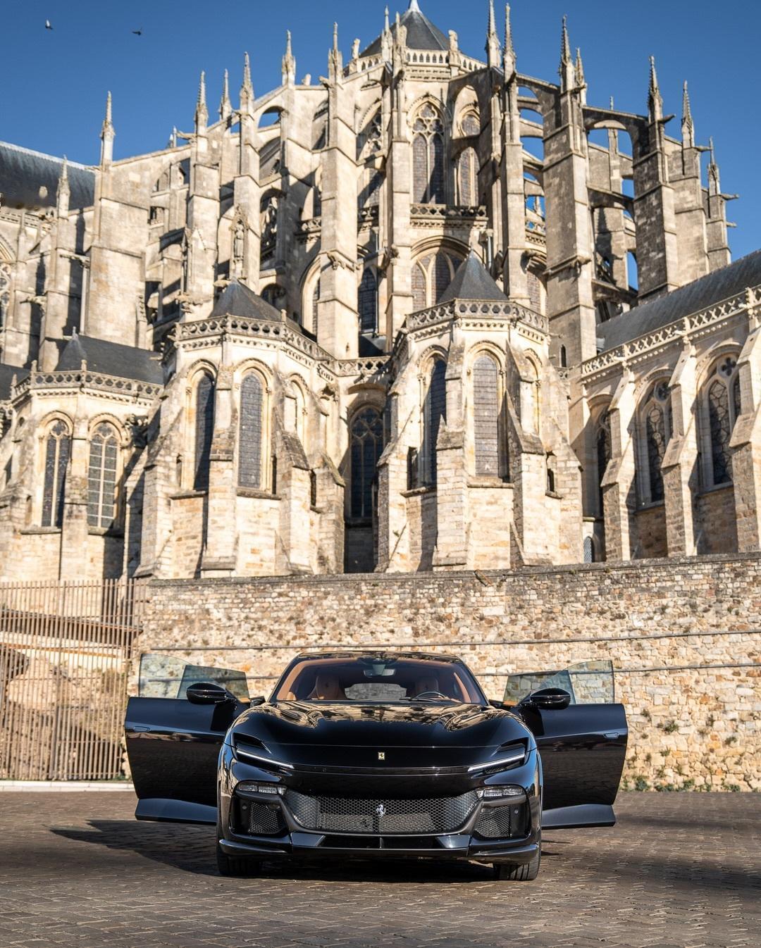 法拉利Purosangue,车身采用Purosangue黑色涂装,搭配全套碳纤维外观套件,为雕塑感十足的车身线条增添了低调却鲜明的运动气质。前翼子板上喷绘的法拉利车队徽标致敬品牌的赛车传承,而摩德纳黄色的刹车卡钳则形成精致的撞色效果,凸显出车型的动感气场。 内饰采用赭色皮质打造,营造出温暖而考究的氛围,辅以多处碳纤维选装件更显质感。集成LED灯的碳纤维方向盘、碳纤维中央通道以及其他碳纤维细节设计,既彰显了Purosangue以性能为核心的理念,又保持了极致的优雅与工艺水准。