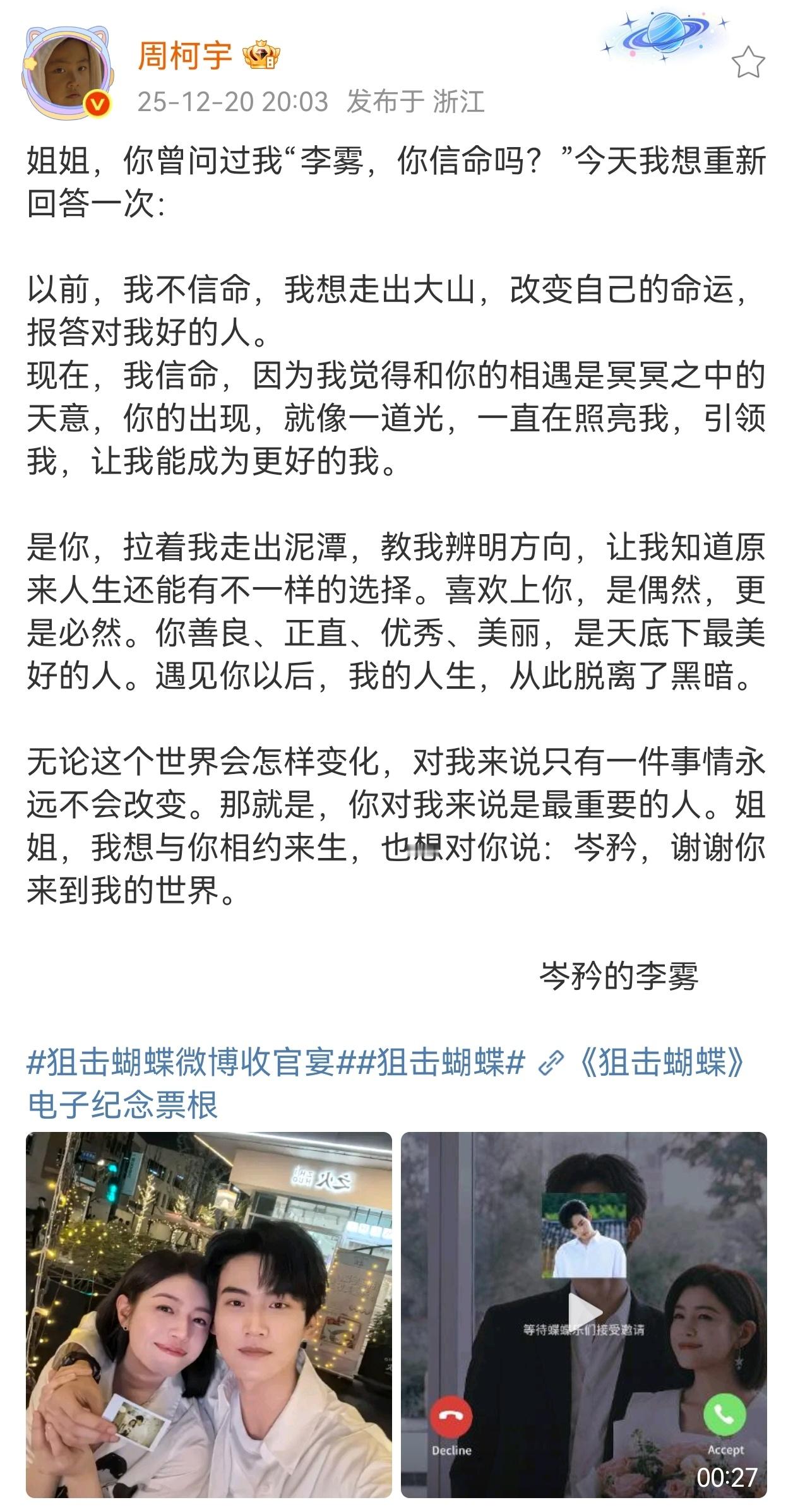 剧版狙击蝴蝶 岑矜的世界有家人有闺蜜有爱人,而李雾的世界只有岑矜😭😭😭两位演员都在很好地维护两个角色狙击蝴蝶微博收官宴