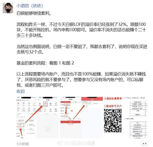 套利!沪指:收报3890.45点,上涨0.36%。深成指:收报13140.21点,上涨0.66%。创业板指:收报3122.24点,上涨0.49%。科创50:收报1308.59点,上涨0.2%。沪深两市成交额1.73万亿元,较前一交易日放量704亿元,市场交易热度略微回升。全市场4477只股上涨,仅905只下跌,核聚变,消费板块等赚钱效应极佳。今天主要来聊聊套利的原理。这套原理级的东西,很适合讲给家里有小朋友的人听。掌握了套利原理,从小规模套利开始交易,逐步养成套利习惯。未来就有机会发掘更大规模的套利机会。这才是应该传递给小朋友们的财商。先讲原理,再讲一个实践案例。以下图为例。现在有市场A和B,同时售卖同一种商品,假设为苹果。aA市场苹果价格便宜,B市场苹果价格贵,扣除费用后,把A市场的苹果运输去B市场售卖有利可图。这个时候应该大量把A市场的苹果运输去B市场套利,直到两个市场苹果价格相似,没有套利空间。这就是很基础的市场运行逻辑。只要市场经济存在,只要有不同地方市场存在,就有机会产生套利区间。这个套利行为,风险很小,把握很大。巴菲特资本金小的时候,经常玩套利,可见套利思维的重要性。对应中国基金市场也是一样。LOF基金既有场内,又有场外。有两个市场,就可能存在套利的机会。尤其是场内交易火爆的时候。这两天我们一直大力强调的套利机会就是这个国投瑞银白银期货LOF。aa国投瑞银白银期货LOF基金的场内最新溢价高达32.39%。意味着在场外通过基金申购可以1元钱买价值1.32元的同种基金份额。一般是T+2后,基金份额到账,就可以在场内以1.32元的价格抛出。风险很小,扣除手续费的极大概率赚钱。这个白银期货基金现在最大的风险就是白银暴跌,目前没有出现。白银这轮牛市上涨是有坚实基础的。还有老师搞错了,去场内高价买了这个基金,就是没弄清楚套利原理。在保证购买的是同一种产品情况下,一定要买便宜那个。未来如果场内相对场外是折价,也就是场内便宜,那就可以是买场内的份额。一定要灵活处理,不要反向操作了。这就是一个基础财商培养。有小朋友的家庭,可以让小朋友从小套利机会做起。用100元,通过这次基金套利,2天可以赚20-30元。这赚回来的钱,可以作为小朋友的奖励。让小朋友亲眼观摩下怎么在市场套利,套利思维的种子就在小朋友脑子里种下了。套利思维的强大之处在于未来出现巨大套利机会的时候,他能比旁人更快速的感知到,进而抓取赚大钱的机会。一个人能感知到大机会,这就是与众不同的能力。培养高级的财商,比去卷其他兴趣班强多了。想要了解套利的,可以看昨天这篇文章:「捡钱了!」风险提示:短期涨跌不预示未来,如提及个股或基金不代表投资建议。投资需谨慎。基金 A股超话财经基金