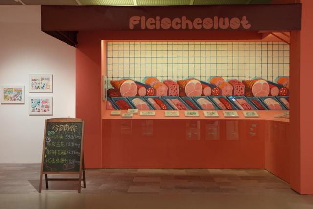一间复刻的“肉铺”,令人感到颇为新奇,里面正在展出的是马丁·厄什名为《肉铺》的一组漫画,在幽默夸张中传递深刻思考。作品深入探讨了肉类背后的文化与情感意味,揭示传统与现代、劳动与消费之间的张力。