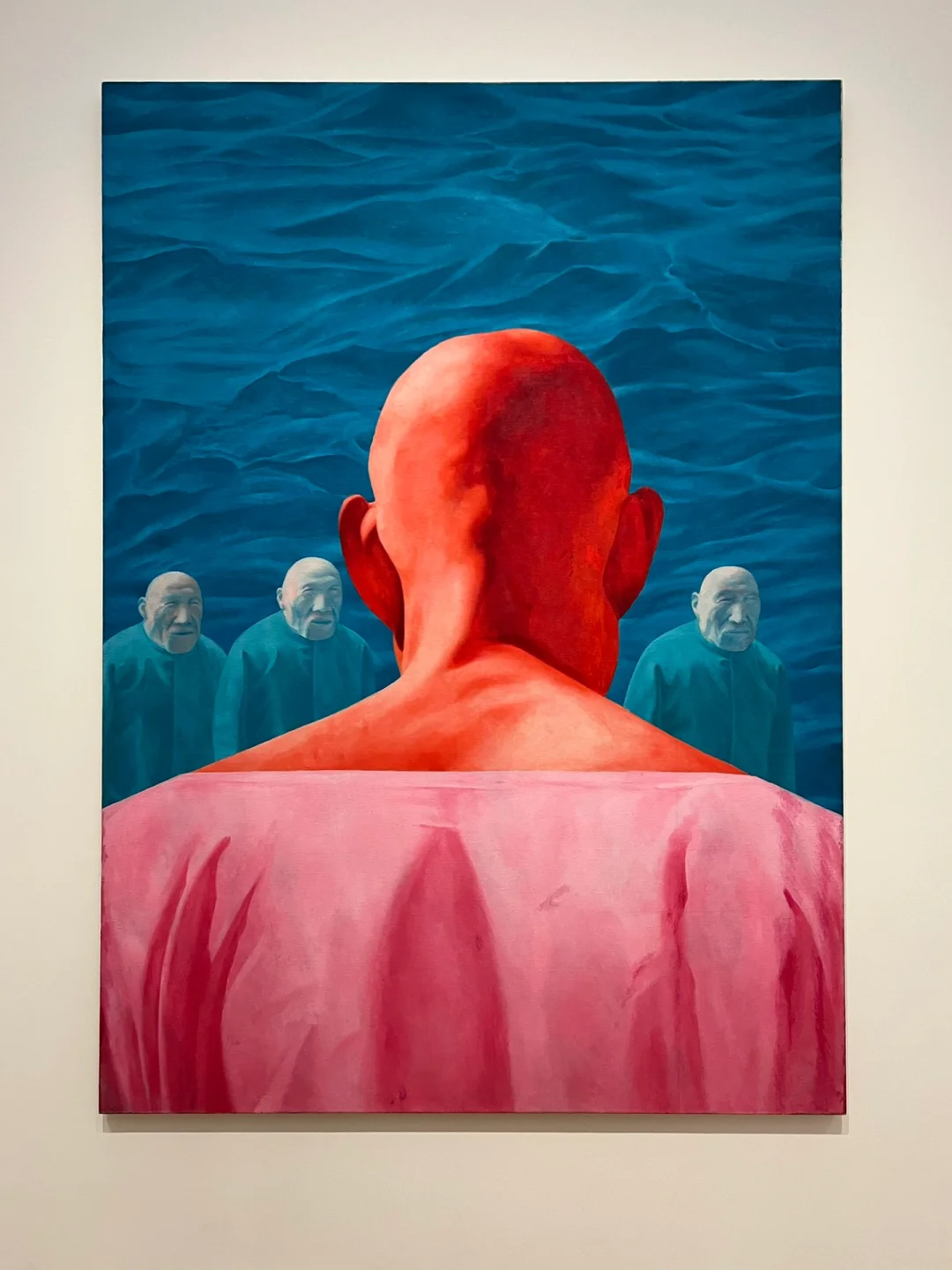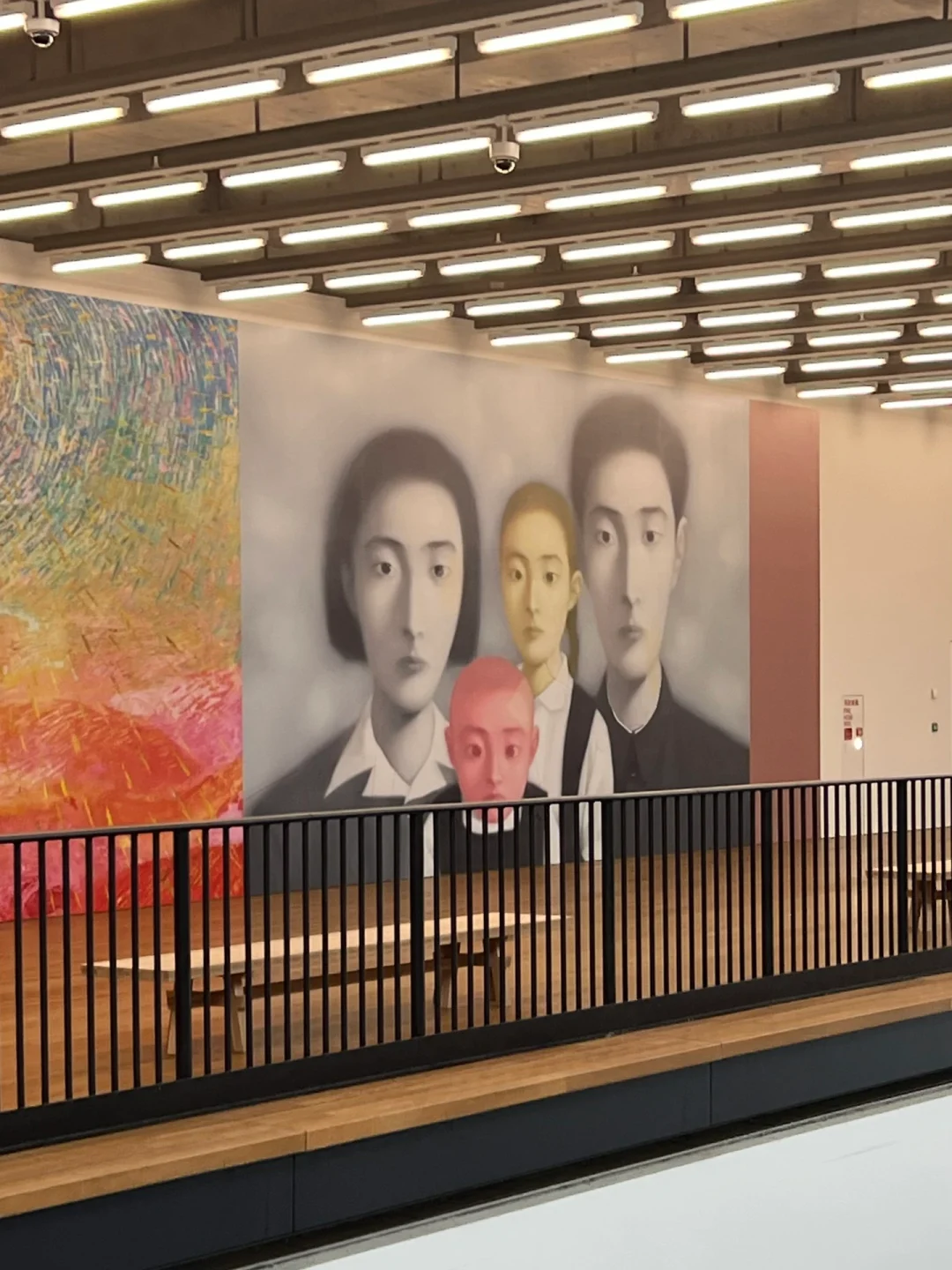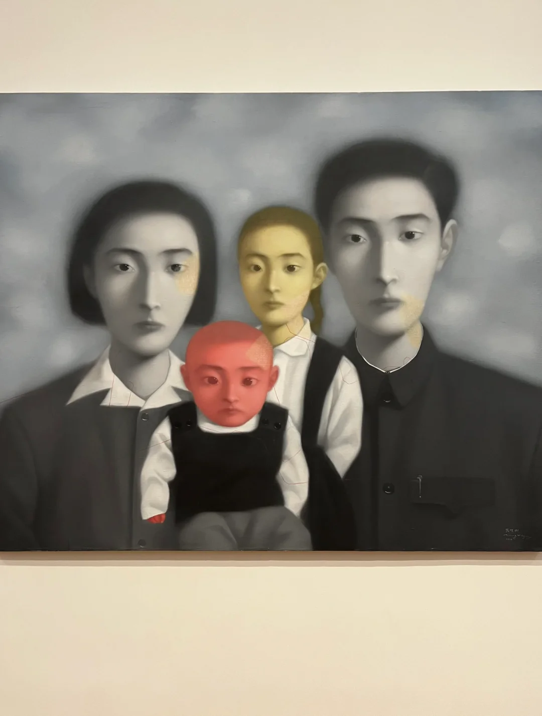 2️⃣“M+希克藏品:从大革命到全球化”:中国当代艺术四十年(2016)”的展览现场, 展出方力钧,《1995.2》(1995)、张晓刚,《血缘──大家庭17号》(1991)、耿建翌,《着衣的两个五拍》(1991)、王晋,《冰.96中原》(1996-2004)及宋东,《哈气,后海》(1996)