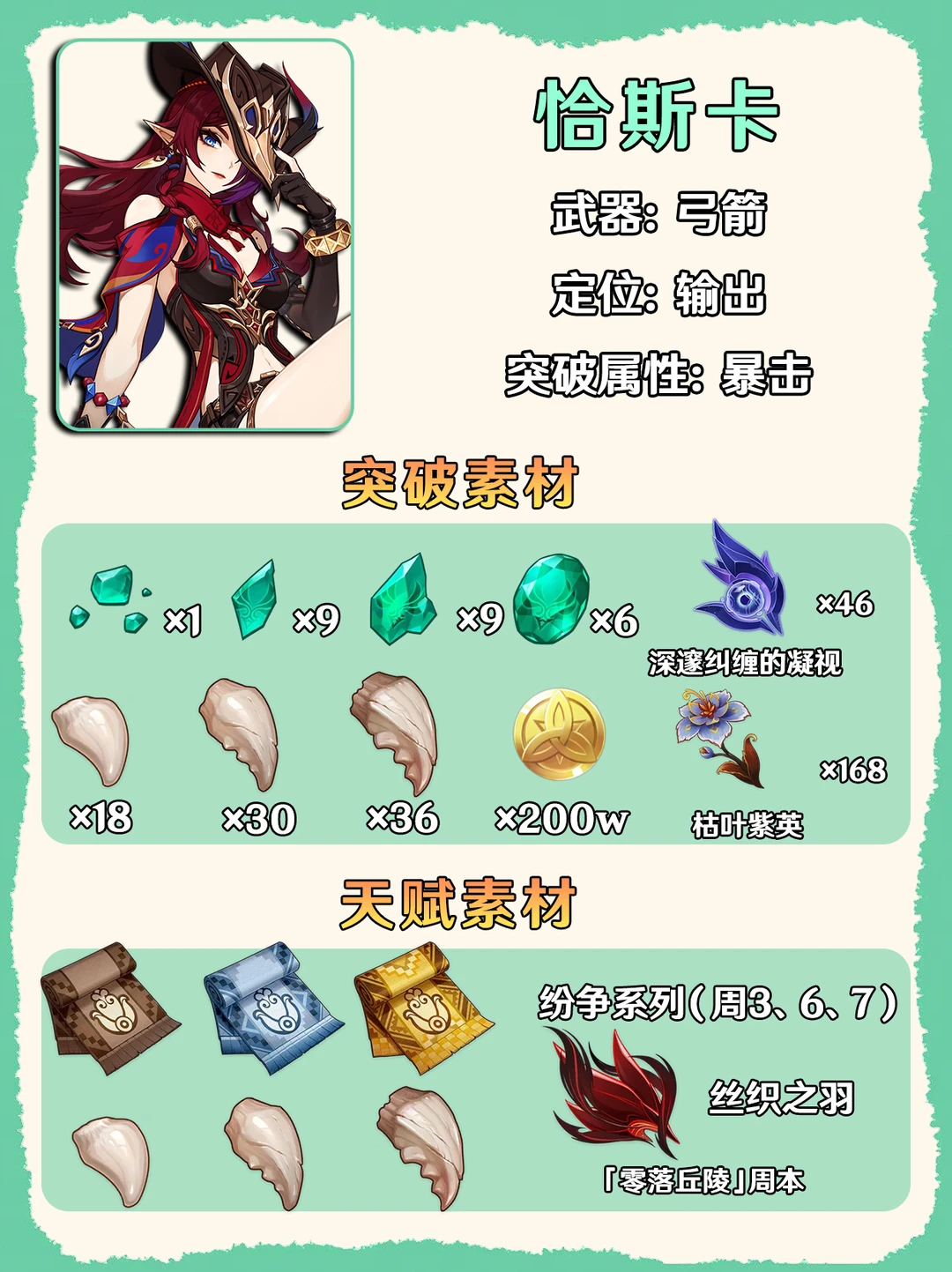 原神恰斯卡复刻!一图采集突破材料!
