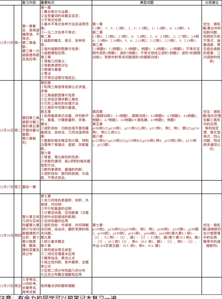 针对薄弱板块做专项练习,都是按章节整理的。时间比较紧张,能扎实攻克一个板块就多巩固一个,目前重点练了函数导数、三角函数、立体几何这几个板块。听说解析几何和概率考得比较基础,就先赌一把,把精力集中在核心薄弱点上。
