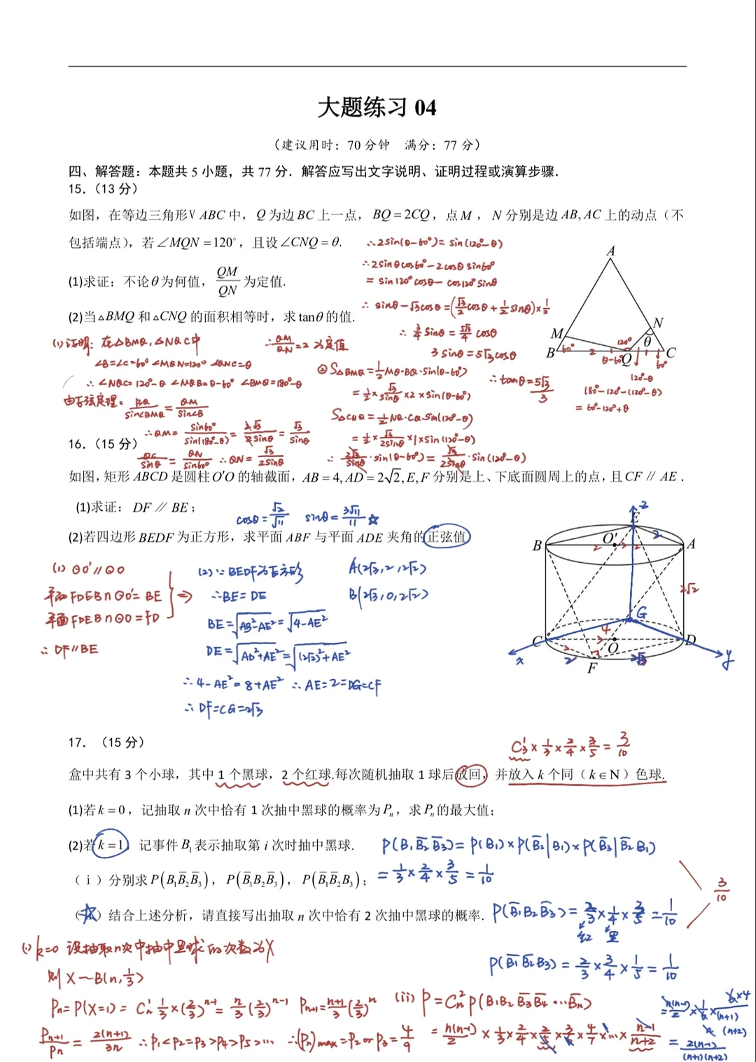 专门整理了4套大题专项练习,每套包含5道核心大题,还附了详细解析,重点强调书写规范和步骤分。大题不光要思路对,更得学会有效呈现,尽量多拿过程分。