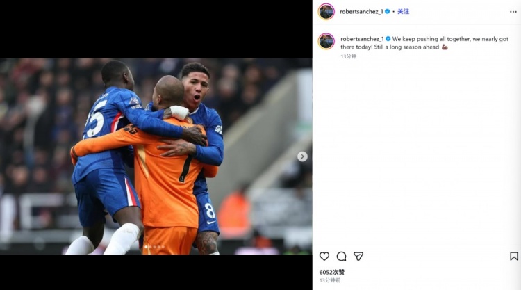 罗伯特·桑切斯也在赛后通过社媒晒出比赛照纪念:“我们一起继续努力,今天差点就能做到(逆转获胜),这个赛季还很漫长!”