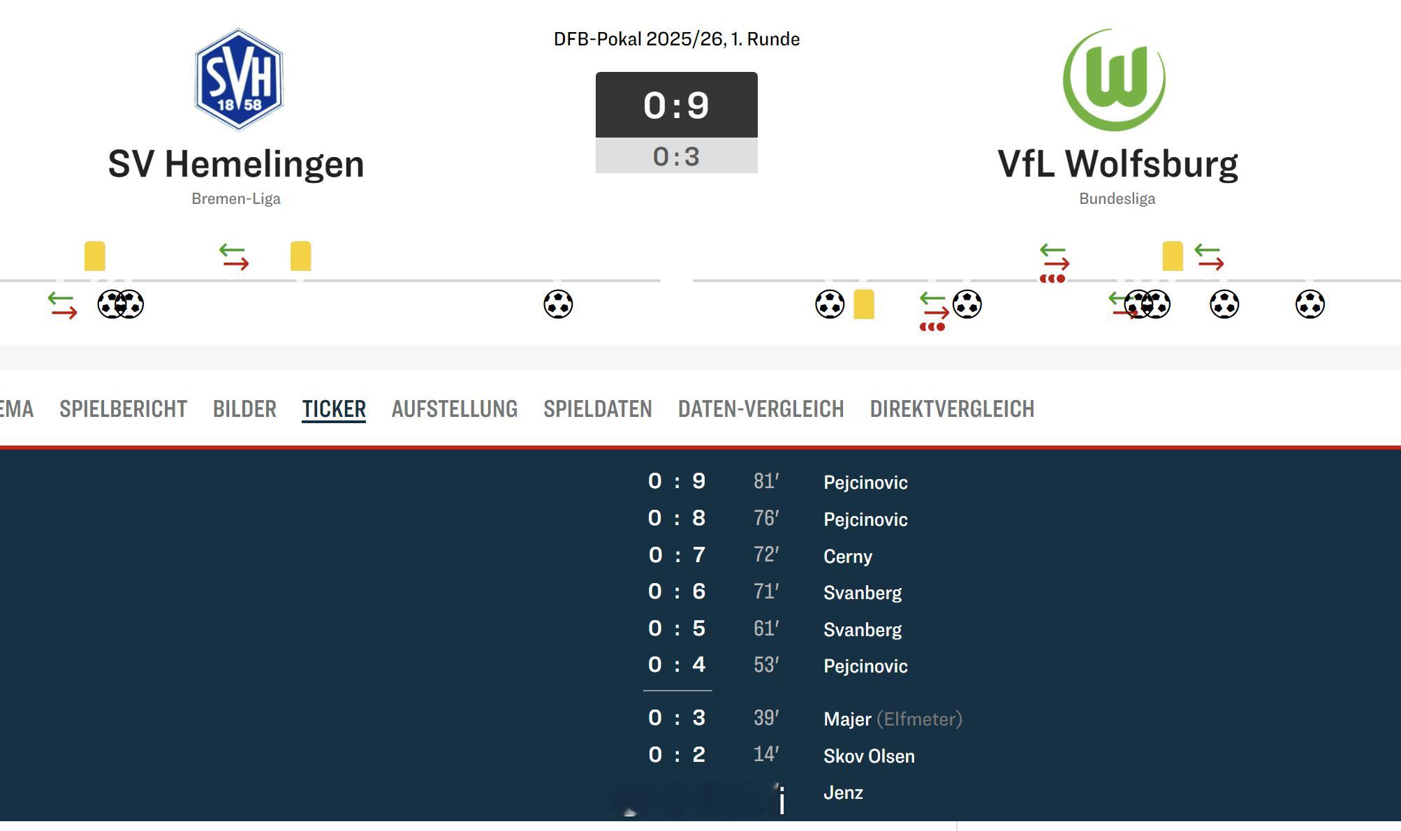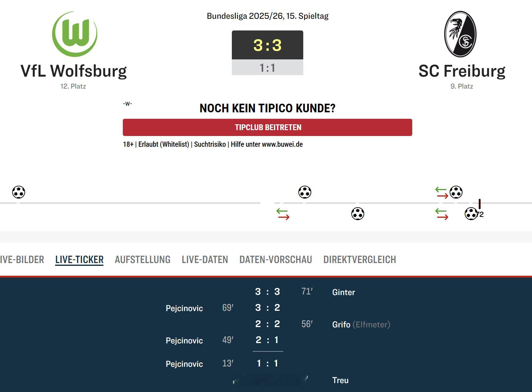 德国U21队中锋佩契诺维奇本赛季代表沃尔夫斯堡双线出场15次,只有2场比赛进球,一场是德国杯首轮9比0横扫业余球队黑梅林根,然后是这场对弗赖堡的德甲(还没结束呢),结果两场都是帽子戏法,神人啊