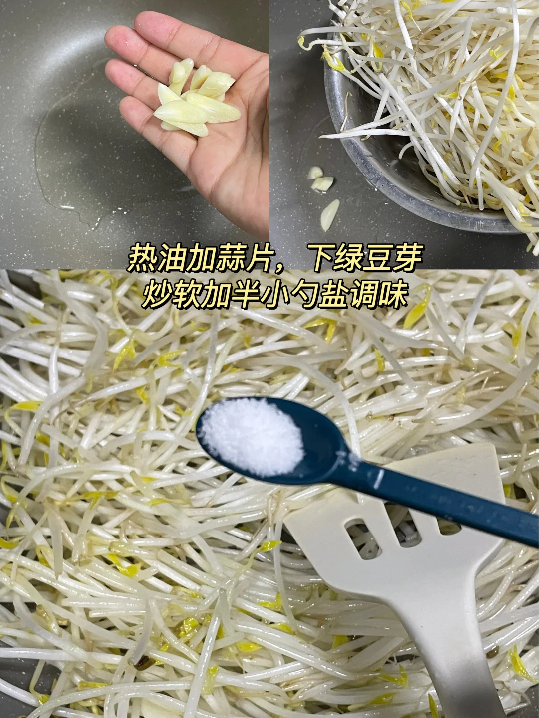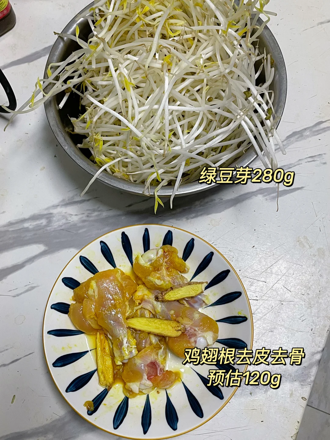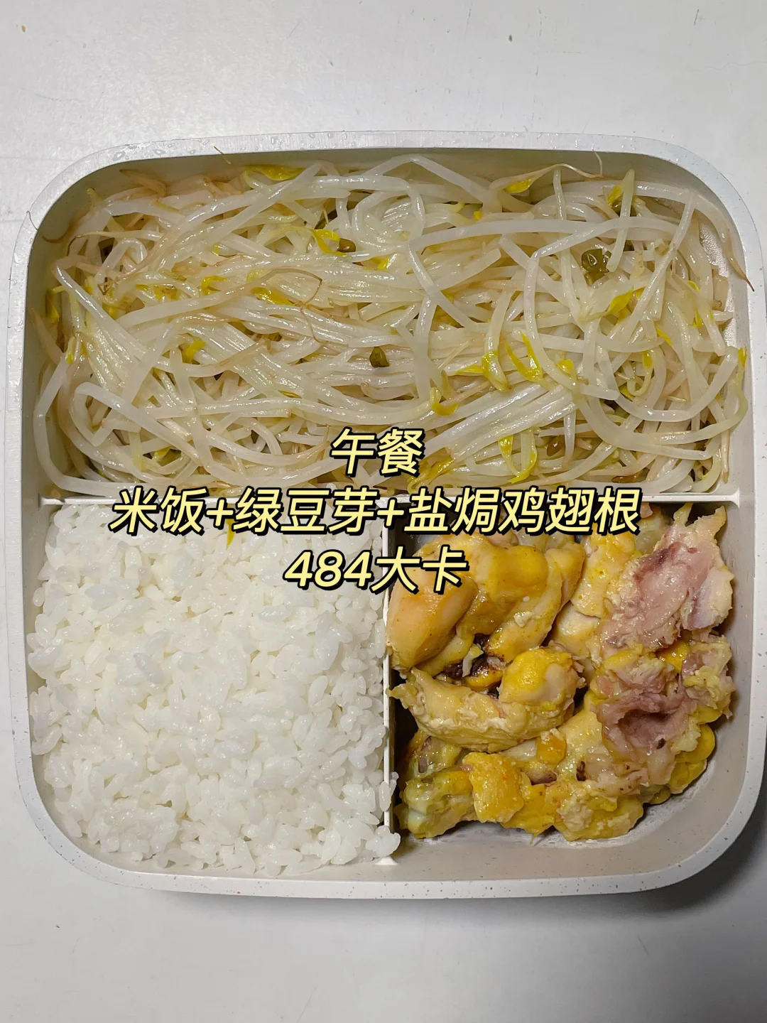 午 米饭+炒绿豆芽+盐焗鸡翅根