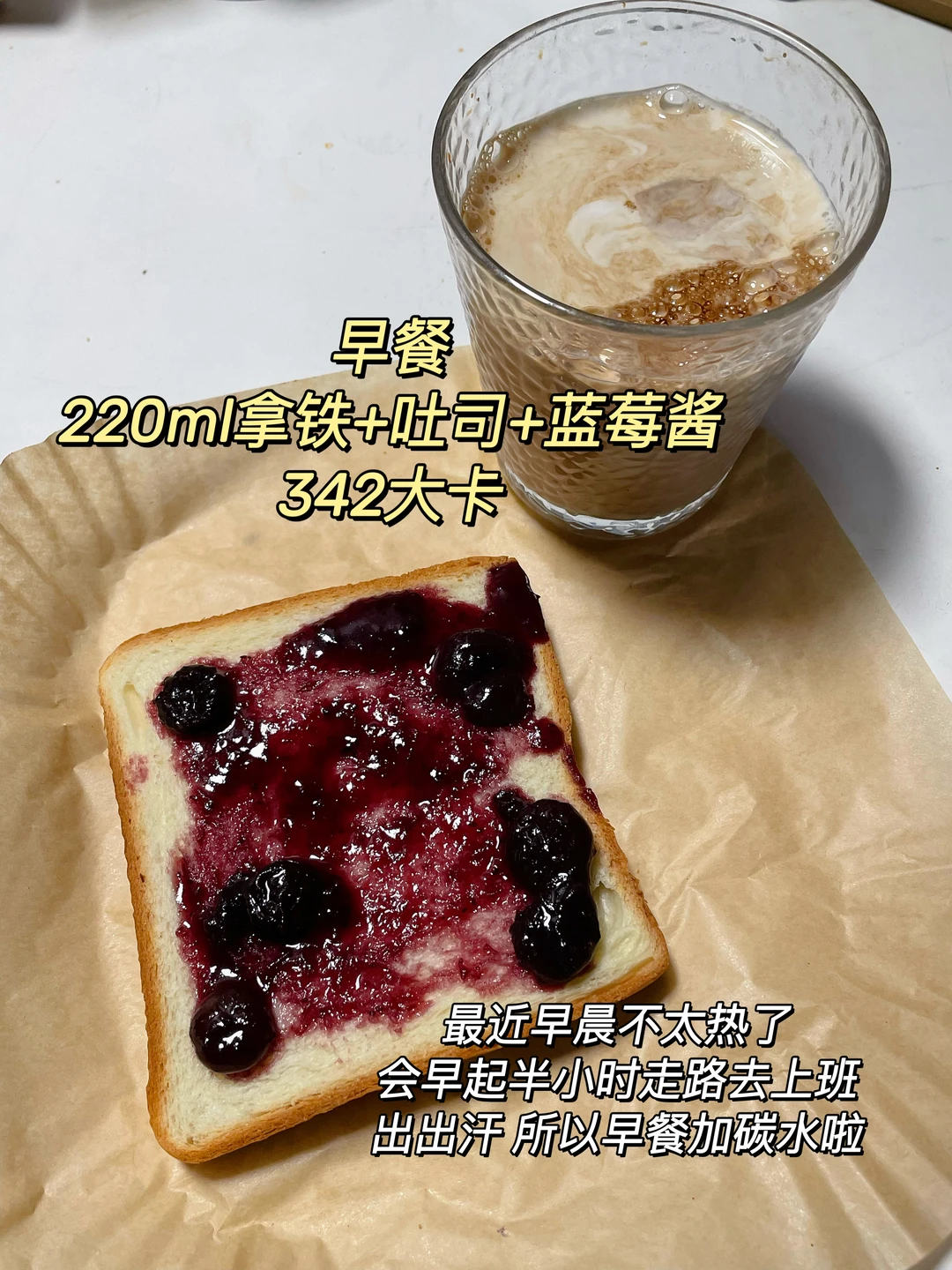 早 拿铁+吐司+蓝莓酱