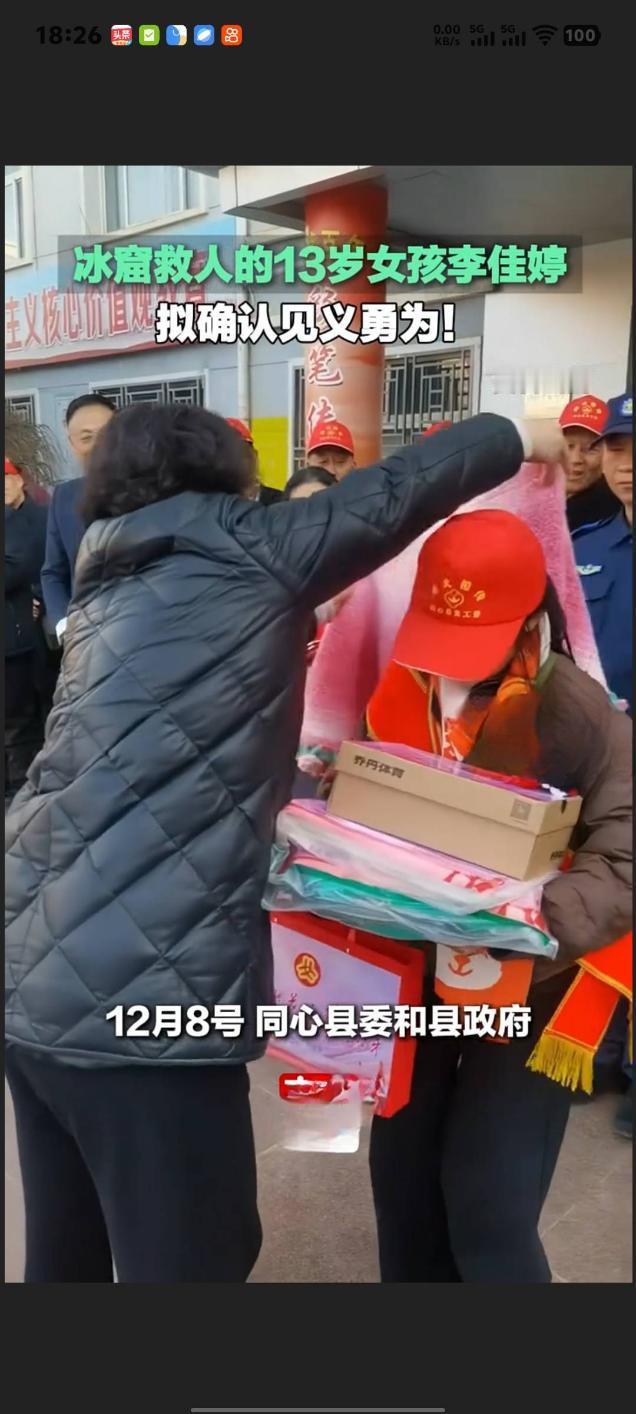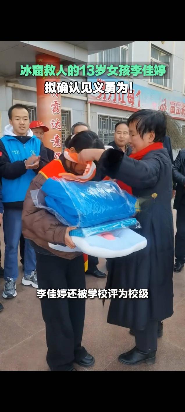 13岁女孩冰窟救人拟确认见义勇为,勇气善举感动全网 凛冬冰窟中,一个瘦小的身影毫不犹豫地冲向危险,用稚嫩的双臂托起了生的希望。 近日,一位13岁女孩李佳婷冰窟救人的事迹引发社会广泛关注。当地有关部门拟确认其行为为见义勇为,表彰其英勇与善良。 据了解,事件发生在冬季,一名人员不慎落入冰窟,情况危急。年仅13岁的李佳婷发现后,不顾个人安危,毅然挺身而出,成功将落水者救起。其果敢的举动避免了悲剧的发生。 此事经报道后,在短视频平台获得超21.9万次播放,网友纷纷点赞。评论中充满了“最美女孩。感动中国”、“当代最美的小英雄”、“这才是时代应有的样子”等赞誉。李佳婷的勇敢行为,为全社会特别是青少年树立了见义勇为、心怀大爱的榜样。 目前,对李佳婷见义勇为行为的确认程序正在进行中。这一荣誉认定不仅是对她个人的褒奖,也是对社会正能量的有力弘扬,呼吁更多人学习她在危急关头展现出的无畏精神与高尚品德。女孩勇敢救人 女孩救人 见义勇为好少年