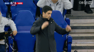 随后他和阿尔特塔做出了同款的抱头动作表示惋惜。