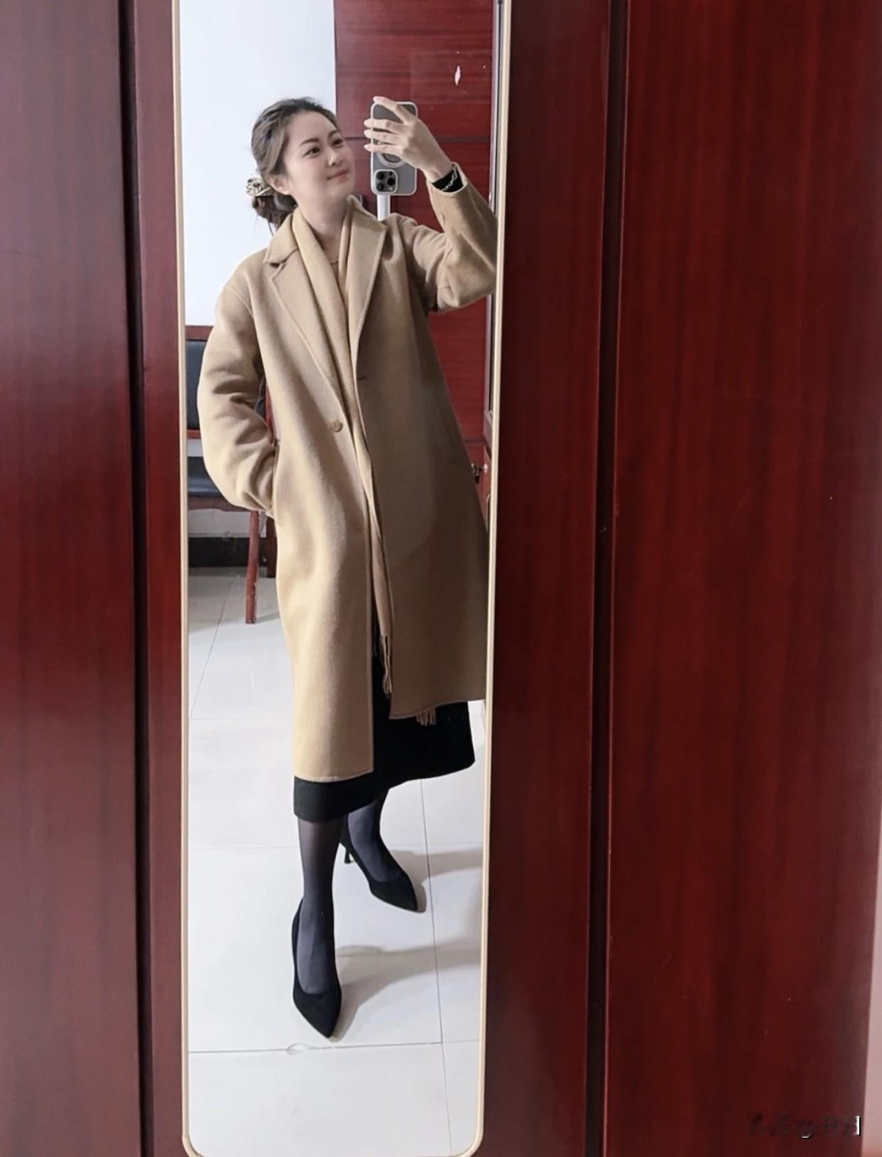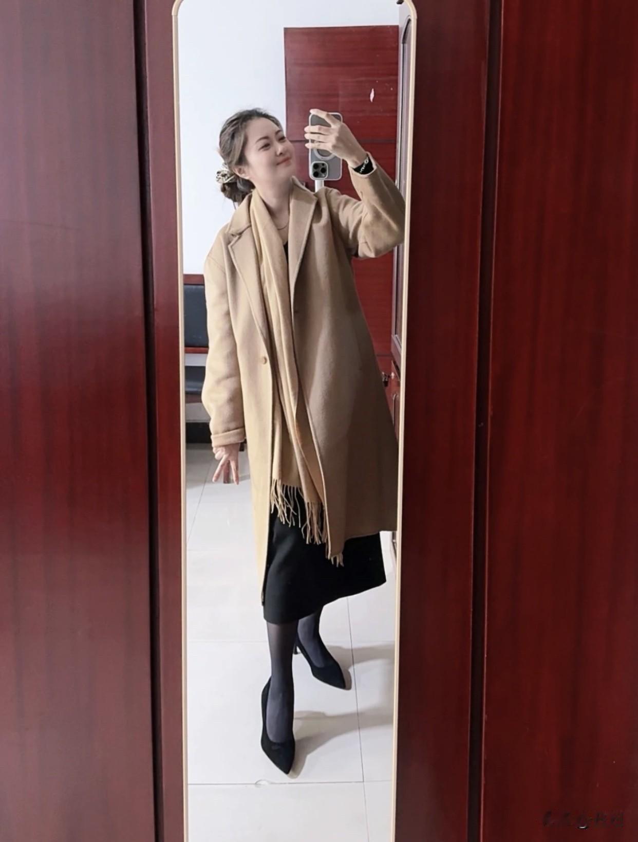 每天美丽照片分享优雅穿搭指南:米色大衣+黑色裙装,尽显时尚气质!