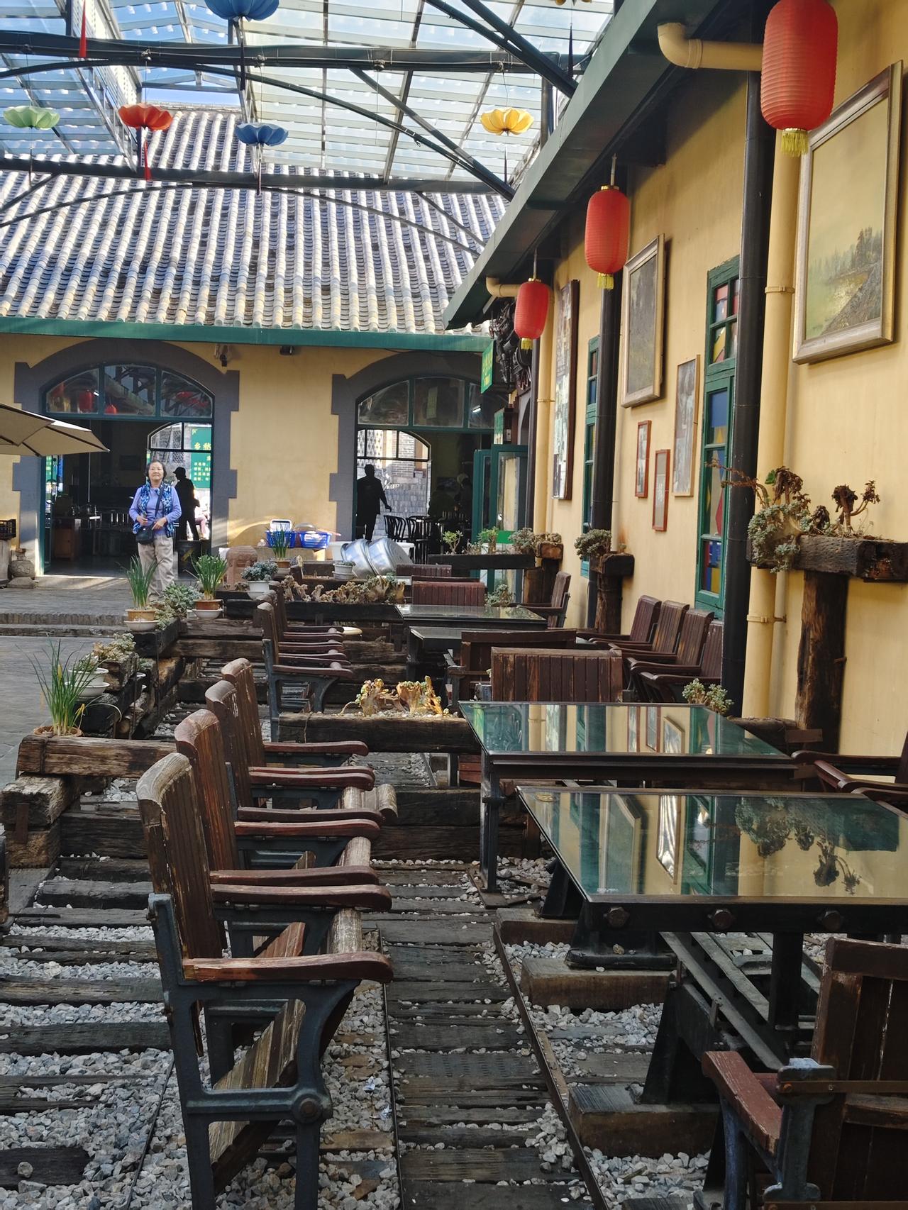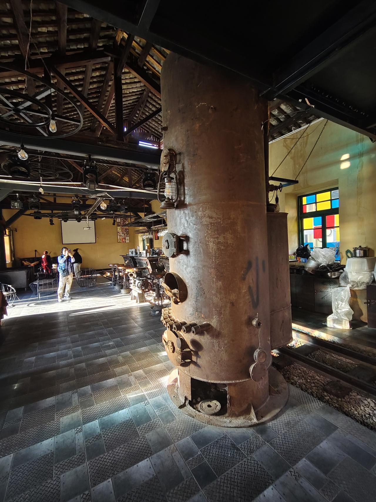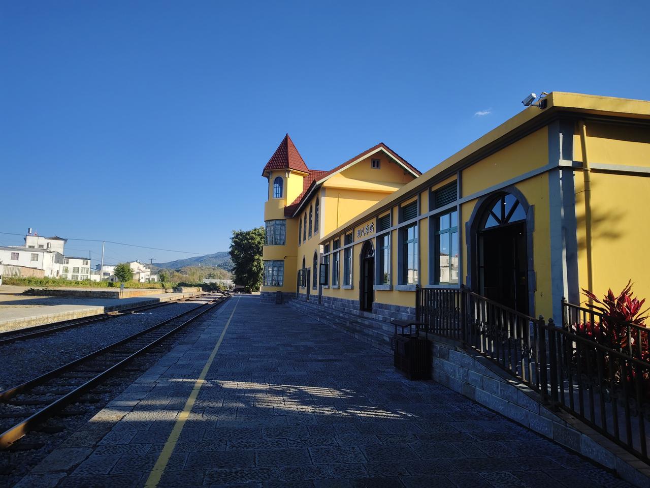 坝心火车站 我们住在石屏县的坝心镇,听宾馆的老板说,坝心镇有个火车站很不错,值得你们去看看。我上网一搜离这儿不到三公里。反正闲着没事儿,我和老伴儿决定徒步去那里看看。 等到了坝心火车站,我们才发现这是一座袖珍的米轨火车站。这里的建筑和装饰都是现代和历史的杂糅毫无违和感。我特别喜欢车站那圆形的塔楼和米黄色的外墙,很有年代感还不失靓丽。 车站有售票台和候车厅,候车厅内布置的很暖人。从列车时刻表上看,每天只有两列火车在这儿停靠,往西可以到石屏县城,往东可以到建水,票价分别是60元和110元。我们没有乘车的需求,便来到隔壁的文化陈列室来参观。这里展示着石屏当地的土特产和少数民族的服饰,还有一些上个世纪人们生活中的老物件。 当走过坝心火车站,我们便来到西侧的餐厅。这是一个极具个性色彩的餐饮场所。院子里放着不知道从哪里搜来的石器,有石缸、石槽,还有许多的石磨,这里成了石头的世界。 走进大厅,这里的装饰就更另类了。櫈子是用工业阀门制作的,吧台是用矿车制作的,座椅是用铁疙瘩改造而成的,更让人称奇的是楼梯用的竟然是一个工业蒸汽锅炉。我们本来没有在这里就餐的打算,看到这样的氛围,又看了看多样化的食谱,不走了,在这里解决晚餐问题。来这里就餐的人不少,大部分都是像我们这样的体验客。 坝心火车站值得一来,在复古中体验现代,在回忆中感恩现在。 写于2025年冬至日坝心火车站