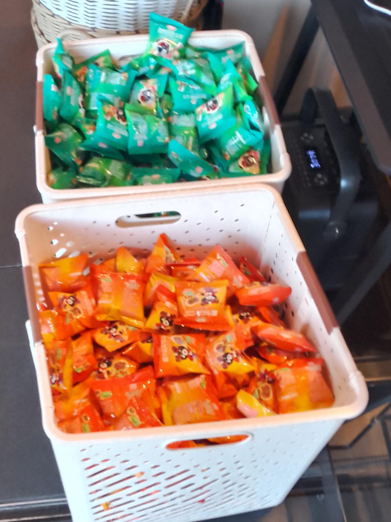 在广州一些要等位的饮食店外面放着一些零食和茶水,免费给等位的客人自己取食,有些人习惯了经过的时候拿几包放在口袋里带回家吃的。