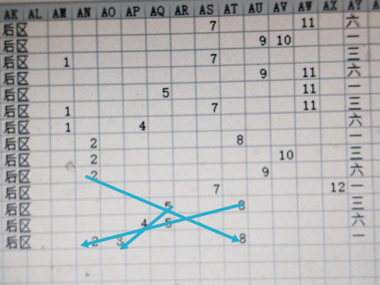 上期前区无0路号无1字头,无黑球号(8一14)。多期无3字头。本期估计仍无3字头