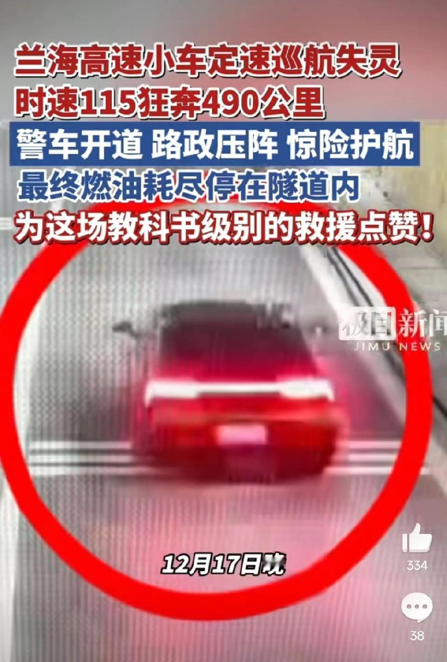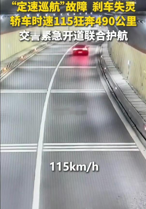 时速115公里,定速巡航锁死,刹车彻底失灵!12月17日,甘肃兰海高速上演生死时速——一辆轿车失控狂奔490公里,直至燃油耗尽才停下,全程4个半小时,司机下车后浑身发抖,几乎崩溃! 当天下午,23岁的马先生驾驶甘A牌小轿车从兰州南上高速,准备返回临夏康乐。刚开不久,他将定速巡航设定在115公里/小时。然而,当车流增大,他试图踩刹车减速时,却发现速度纹丝不动,定速巡航也无法关闭! “当时头皮发麻,但只能靠自己!”马先生回忆,车上还有女伴,他一边强作镇定,一边打开双闪、长按喇叭,甚至多次冒险从应急车道强行超车。每一次超车都如同与死神擦肩,几度险象环生。 接到报警后,甘肃高速交警、路政部门立即启动应急预案。临洮高速交警率先开道,前方警车引导,后方路政压阵,封闭沿途收费站,形成“护航编队”。10余辆警车接力护送,为失控车辆开辟出一条“生命通道”。 “前后都有警车,心里稍微踏实了些。”马先生说,尽管如此,他仍担心前方弯道,直到油表指针逼近零,车速才逐渐从115公里/小时降到30公里/小时,最终在强家湾隧道内停下。 “车停后,我浑身发抖,一句话都说不出来。”马先生回忆,被扶上救援车时,他仍心有余悸。全程490公里,每一秒都是煎熬。 事后,故障车已被拖回4S店。马先生表示,他要求退车退款并赔偿精神损失5万。“这车我再也不敢开了。”他说。 最终厂家同意赔偿4.5万元 专业人士分析,现代汽车定速巡航通常有“制动优先”设计,踩刹车应能解除巡航。此次事故中,刹车与巡航同时失灵,极为罕见。可能原因包括刹车开关故障、节气门异常、ABS系统故障等。 车企技术工程师指出,乘用车制动系统有多重冗余,制动力突然消失的概率极低。此次事故技术原因仍有待权威调查。 事件曝光后,引发网友热议。网友质疑:“定速巡航和刹车同时失灵,这车还能开吗?”“智能汽车越来越先进,但安全底线在哪?” 近年来,类似事件频发。今年2月,湖北一车主在高速上遭遇定速巡航失灵,最终靠远程指导长拉手刹才脱险。10月,湖南高速又发生轿车以110公里/时速狂奔200公里的险情。 目前,甘肃省相关部门已介入调查。涉事车辆品牌虽未正式公布,但有消息称为奔腾B70。厂商尚未回应。 这场490公里的生死狂奔,不仅考验了司机的心理素质,更暴露了智能汽车的安全隐患。真相究竟如何?我们拭目以待! 专家提醒,如遇定速巡航失灵,应立即报警,同时尝试轻踩刹车、按取消键、切换空挡等方式解除巡航。切勿强行熄火,以免失去转向助力。保持冷静,等待专业救援,是关键中的关键! 这起事件,再次敲响了汽车安全的警钟。在智能化浪潮下,如何保障行车安全,已成为亟待解决的重大课题!