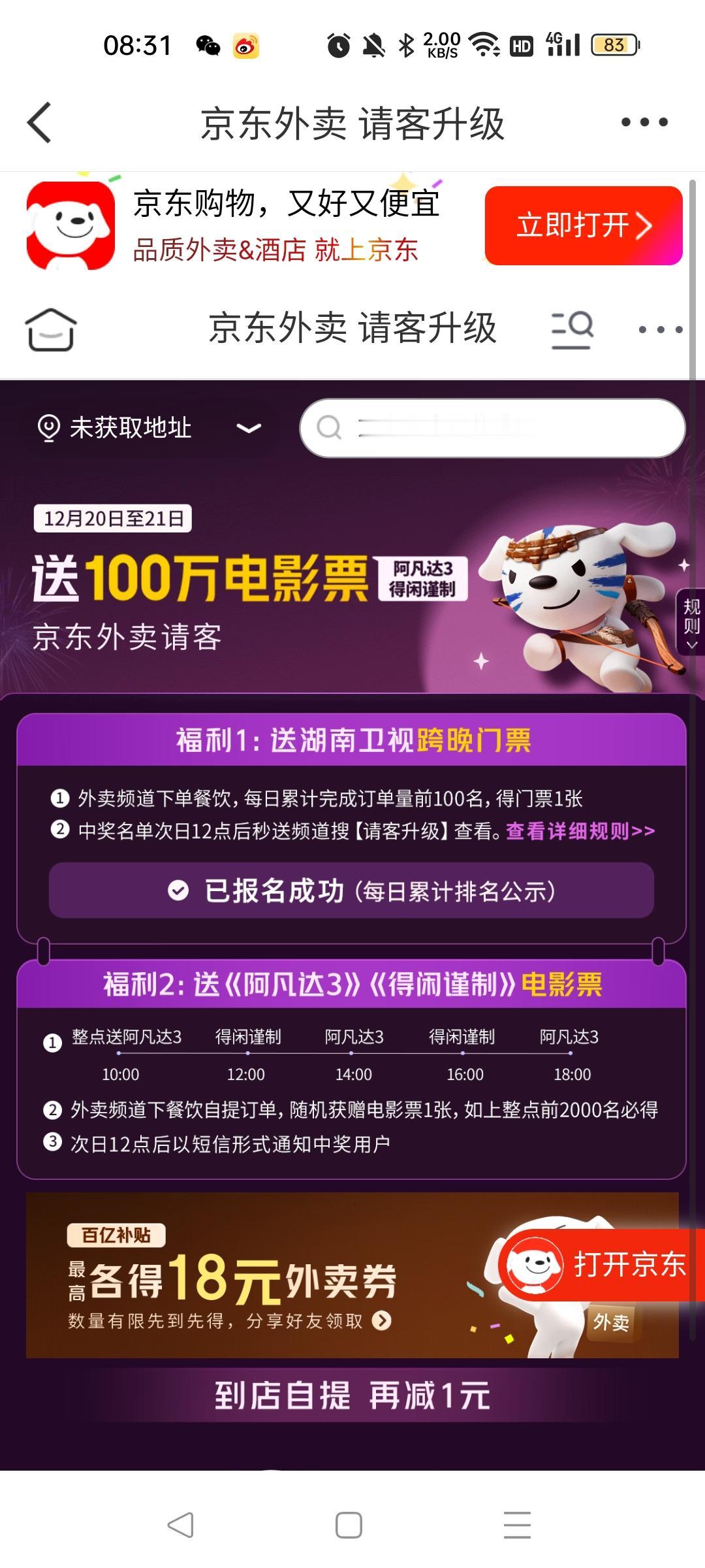 京东外卖疯了!这福利谁能忍得住?京东外卖送湖南卫视跨晚门票 家人们,看到这个消息我直接原地沸腾了!上京东点外卖,今日下单量TOP100必得湖南卫视跨晚门票1张!这是什么神仙福利啊?想象一下,在跨年的夜晚,和喜欢的明星一起倒数,那氛围,简直不要太嗨! 而且啊,全天5个整点下自提订单前2000名必得电影票!大冬天的,约上三五好友,去电影院里吃着爆米花,看着精彩的电影,简直美滋滋。更绝的是,还有自提订单2杯低至2.9元的周末超级福利!这是怕咱们兜里钱太多,非得给咱们省下来是不? 我就琢磨啊,京东这是下了血本要让咱们乐呵乐呵。现在这社会,大家压力都大,像这样实实在在的福利,就跟疲惫生活里的一颗糖,甜到心坎里了。咱平时点外卖也就是为了方便,现在好了,不仅能满足口腹之欲,还有这么多惊喜等着。这背后啊,其实也能看出京东对咱们消费者的重视,就想着让咱们在消费的时候能多收获点快乐。 不知道大家有没有心动呢?我反正已经准备好定好闹钟,疯狂下单了!你觉得这次京东的福利怎么样?你会为了这些福利去点外卖吗?快来评论区说说你的想法吧!社会百态 社会新闻