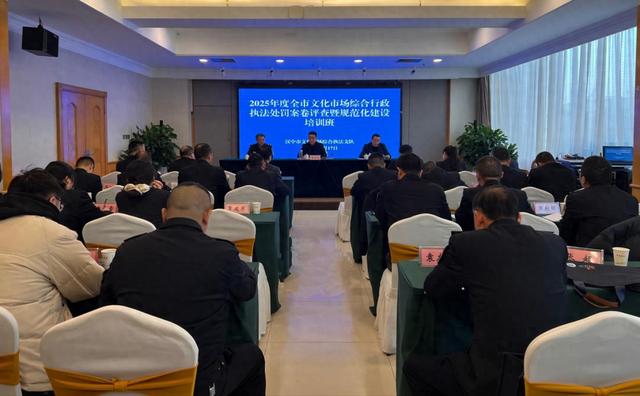 12月16日至19日,市文化市场综合执法支队举办2025年全市文化市场综合执法行政处罚案卷评查暨规范化建设培训。市文化市场综合执法支队支队长陈东主持开班式并讲话,各县(区)文化市场综合执法机构负责人、执法业务骨干共计50余人参加培训。