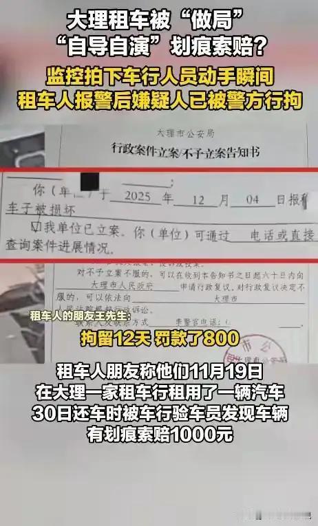 【贼喊捉贼?大理奇遇记,笑中藏深意】 在云南大理那片碧海蓝天、白云苍山的美丽土地上,发生了一段令人啼笑皆非的“江湖奇闻”。男子小李和好友小张,怀揣一颗探索之心,踏上了这片神奇的土地。为了方便出行,他们租了一辆新能源轿车,每天只需30元,实在是物美价廉。两人心怀感恩,心想:健康生活,从善待自己开始,出行也要绿色环保,何乐而不为? 然而,人生如戏,戏如人生。还车当天,验车员突然“发现”车后右保险杠有新划痕,竟然索赔1000元!两人一听,顿时如遭雷击,心想:我们小心驾驶,怎么会有划痕?于是,好说歹说,最终赔了600元。正当他们以为事情就此尘埃落定时,小李无意中发现,停车点对面竟然有监控摄像头。 出于好奇,也为了还原真相,小李报警调取监控录像。画面一看,顿时让人哭笑不得:原来,这场“事故”竟是租车公司玩的一场“贼喊捉贼”的游戏!原来,租车行在车上做了手脚,制造划痕,意图借机敲诈一笔。正所谓“贼喊捉贼”,阴谋败露,反被自己“坑”了个底朝天。 这件事给我们带来深刻启示:真正的健康,不仅仅是身体的无恙,更是心灵的安宁与正气的彰显。健康,是内外双调的完美结合。外在的健康离不开良好的生活习惯,内在的健康则需感恩之心、善良之心的滋养。正如大理的苍山洱海,外在美丽动人,内心的宁静更是人间天堂的真谛。 我们要以此为镜,警醒自己:生活中,要用感恩的心去面对每一次遇见,用宽容的胸怀去包容每一次挫折。只有心怀感恩,才能拥有真正的健康和幸福。正能量如春风化雨,润物无声,感染身边的每一个人。 让我们记住:健康不是一朝一夕的事,而是点点滴滴的积累;快乐不是偶然的巧合,而是心怀感恩的必然。生活就像大理的风,虽有时会刮起阵阵风雨,但只要心中有阳光,就能迎风而立,笑对人生。如此,才能在繁忙的尘世中,找到那份属于自己的宁静与幸福。 愿我们都能以感恩之心,守护内外双调的健康之道,笑对人生的每一场“奇遇”。因为,真正的幸福,就是在平凡中感受到不平凡的美丽! 旅游怪事