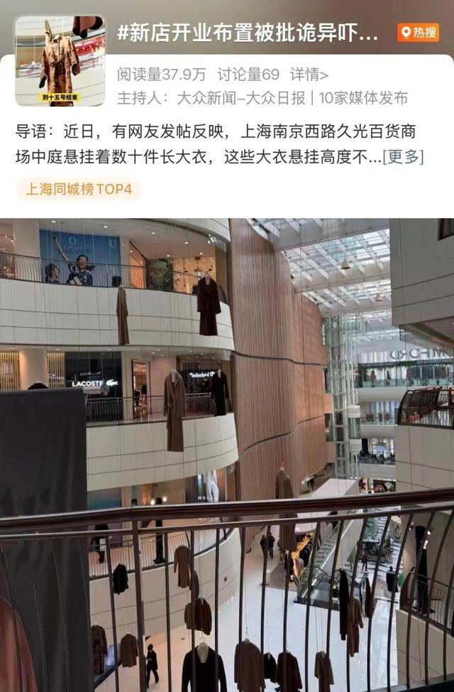 久光中庭里悬空的大衣现已撤走,它引发的争议提醒我们:当艺术离开美术馆的白盒子,步入真正意义上的公共领域时,它必须学会用另一种语言说话——不仅关乎美学创新,更关乎社会共情、空间伦理的语言。唯有如此,艺术才能从悬置的状态降落,稳稳地站在大地之上。