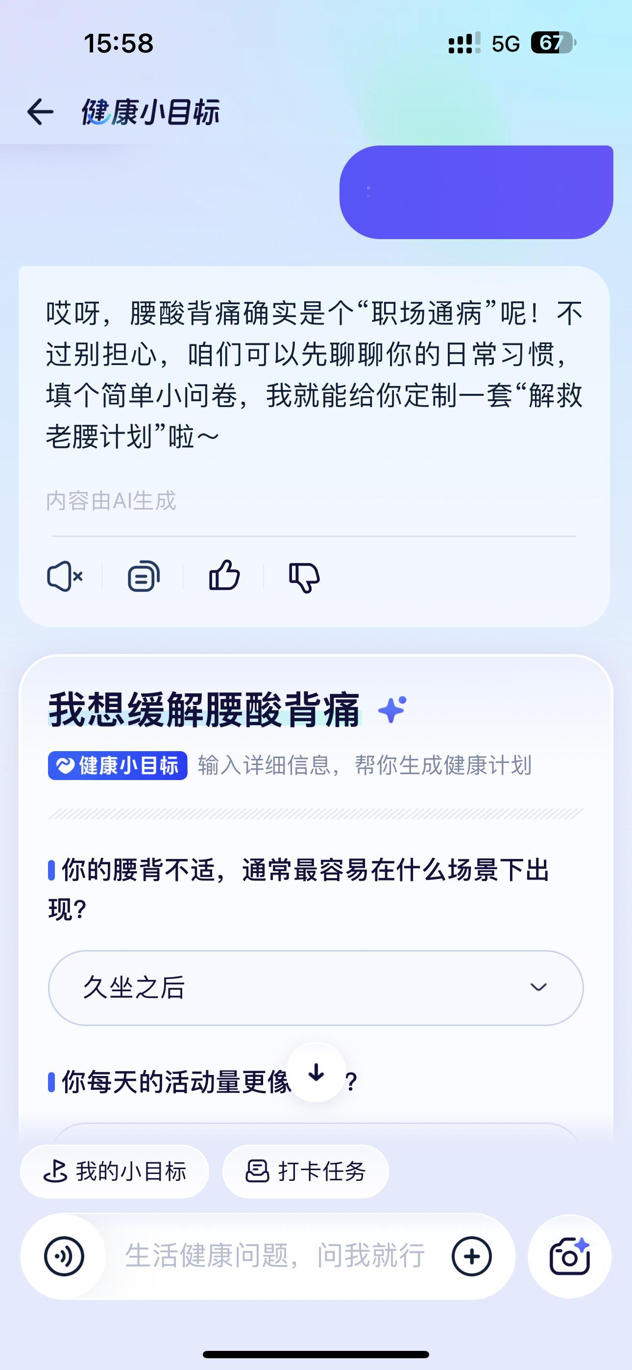 作为一年出差300天的博主,我的减肥困境太真实了——✈️在机场赶路顾不上吃饭,落地只能深夜点高热量外卖,酒店健身房总没时间去…体重就像飞行里程一样只涨不跌。直到遇见我的随身健康搭子「蚂蚁阿福」,差旅健康管理终于有了救星:在陌生城市点外卖前,拍照给阿福就能看穿热量陷阱,再也不怕隐藏的“爆卡套餐”。设置“每天喝够2L水”“晚上不吃宵夜”的小目标,它像助理一样准时提醒,跨时差出差也不忘。根据我的行程和酒店条件,阿福给我定制了“15分钟客房燃脂计划”,不用器械,利用碎片时间就能练。最让我安心的是,它还能管理全家健康档案——即使我在千里之外,也能远程关注爸妈的体检报告和用药提醒,像有个贴心的健康管家守在家里。这次不用再立“旅行结束就减肥”的flag了,因为健康管理已经融入了在路上的每一天🌍这个减肥搭子我是真的想要